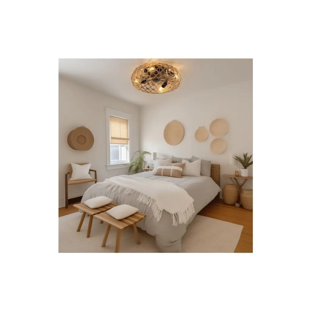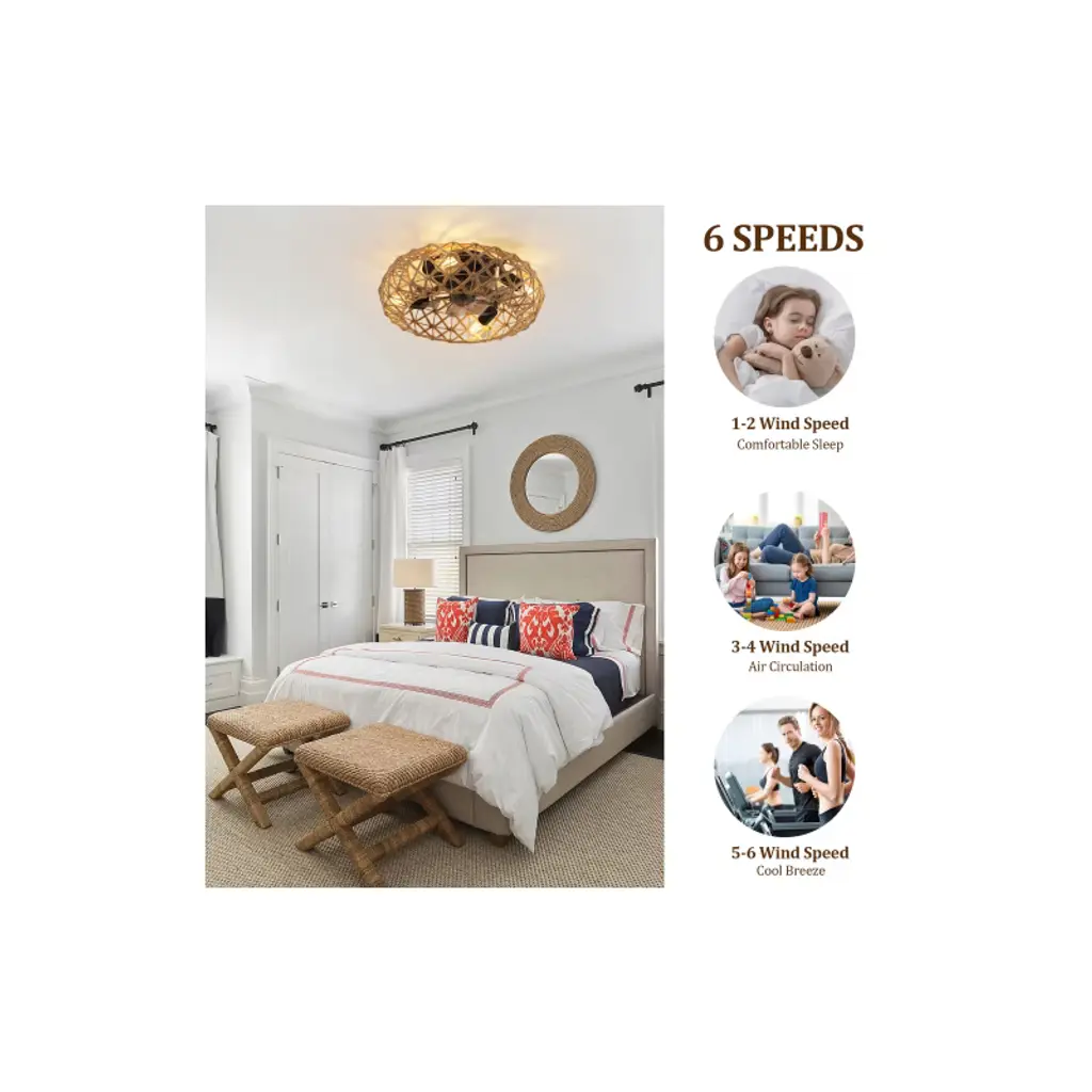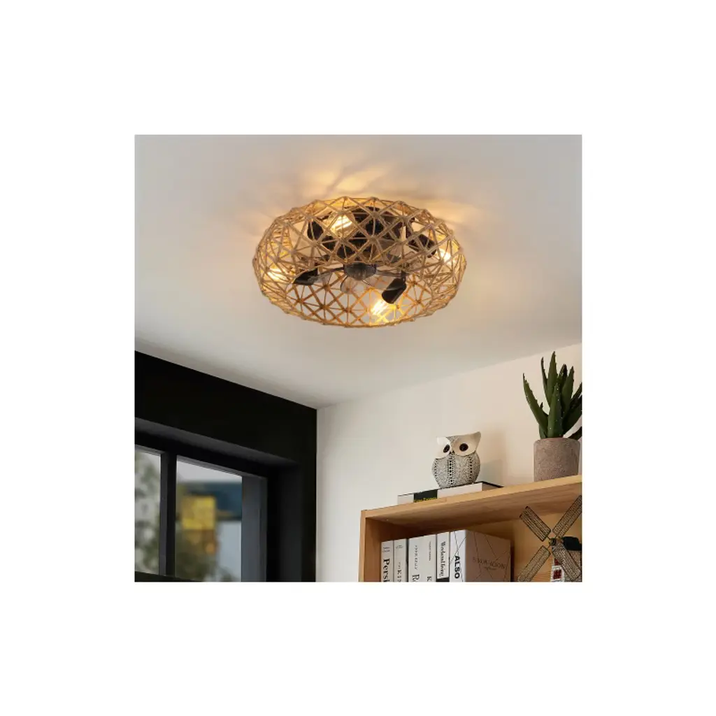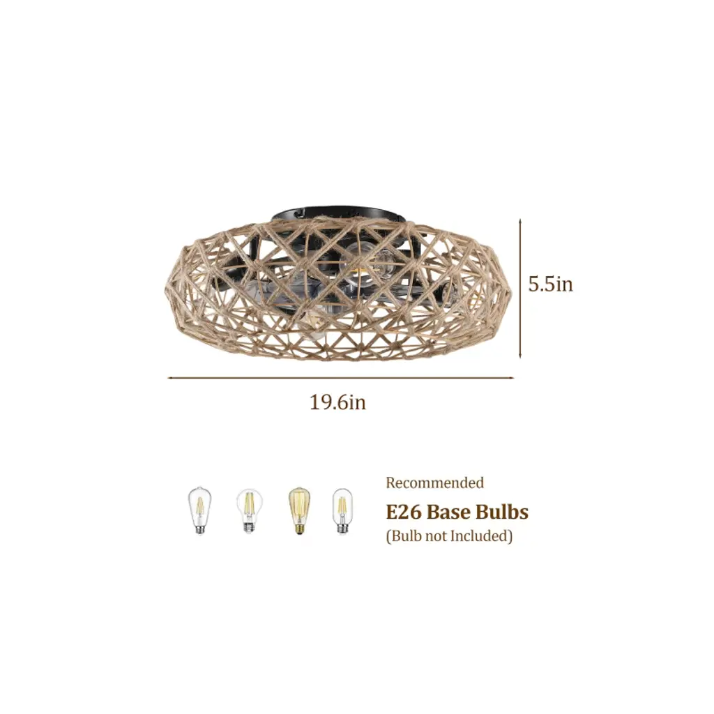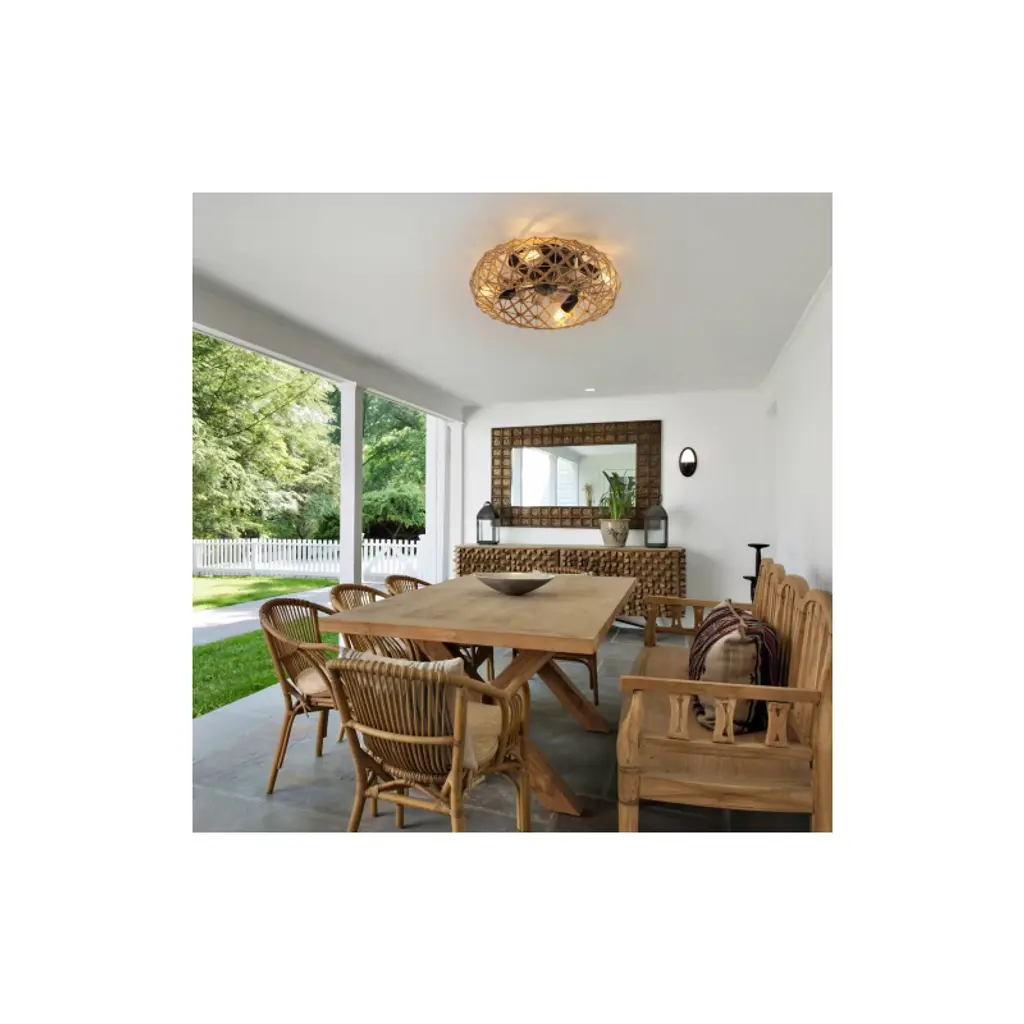 Tobili Ceiling-mounted Jute Rope Fan Light Strip With 4 Bulbs,dimmable,7 Dlades