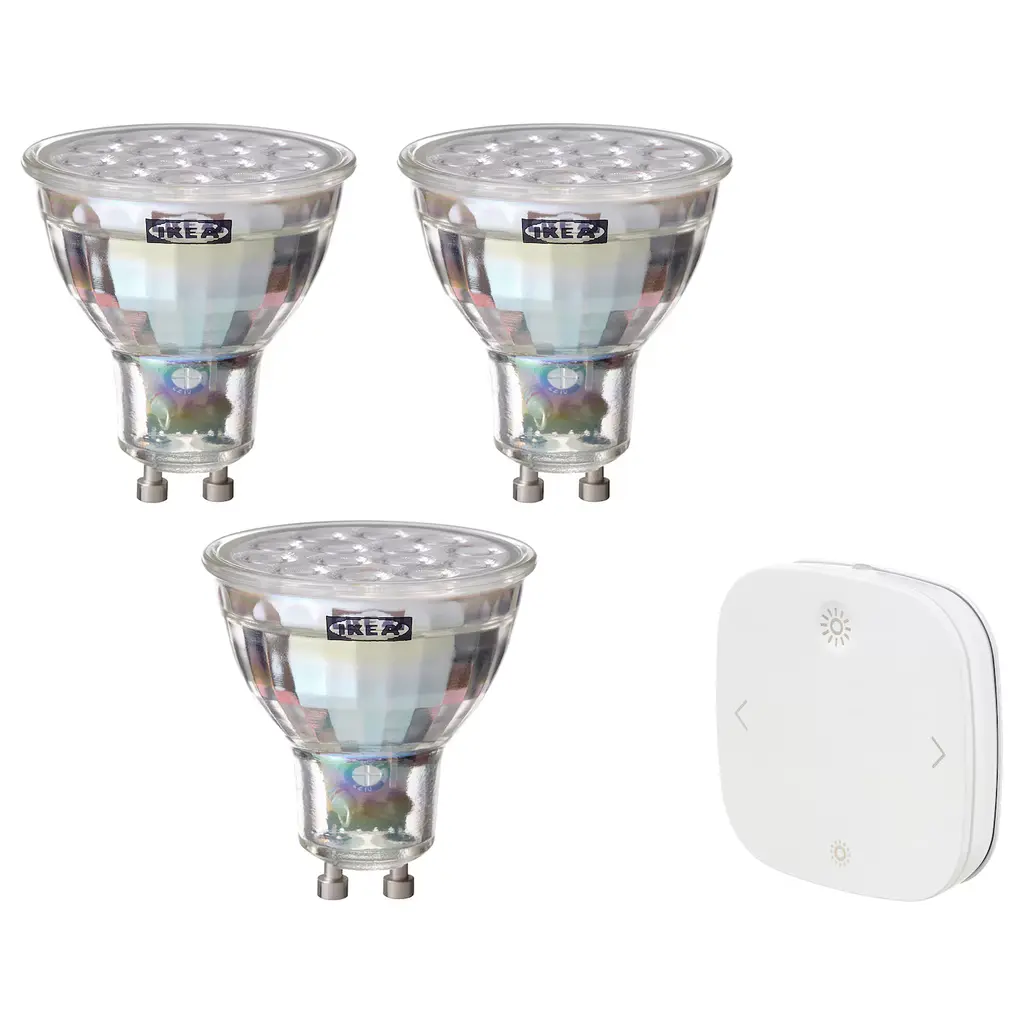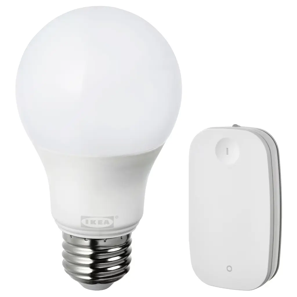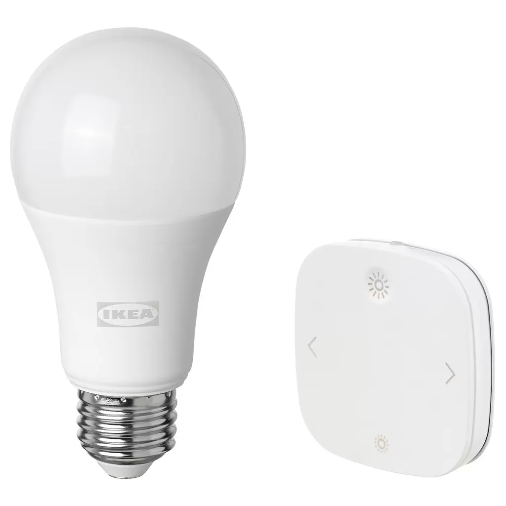TRÅDFRI Starter kit - smart/wireless dimmable white spectrum E26. This kit is already pre-paired, so all you have to do is screw the light source into the lamp socket and then start using your smart lighting. By dimming the lighting, you change the mood in the room. LED life approx. 25,000 hours.