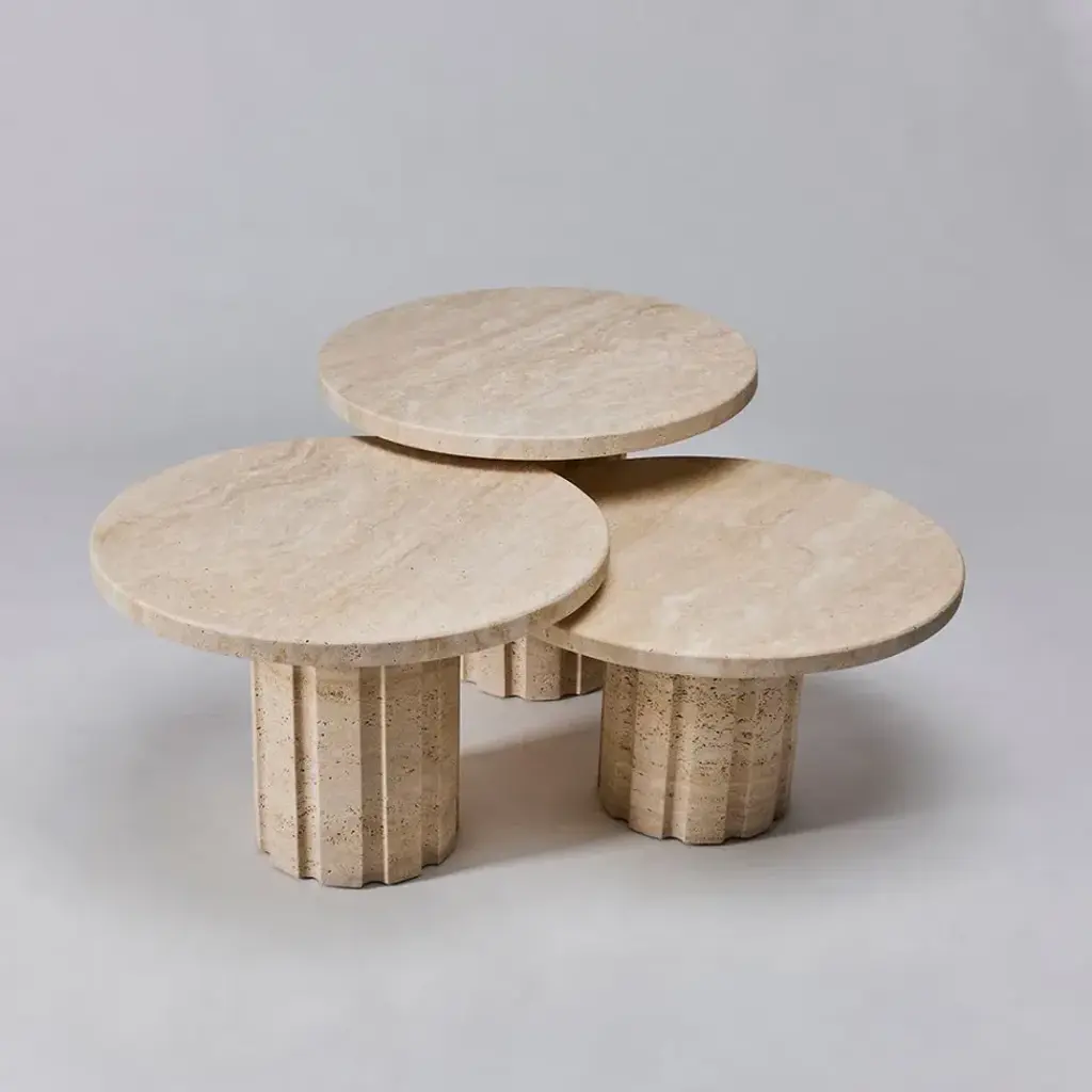 Amerigo Set Of Three Bunching Tables, Travertine