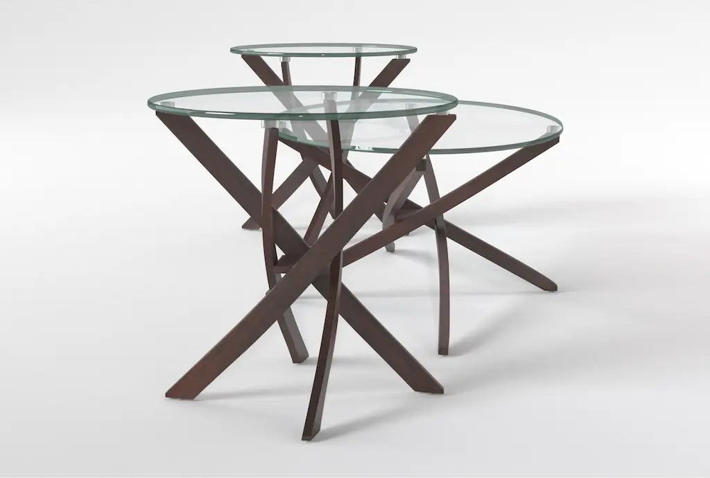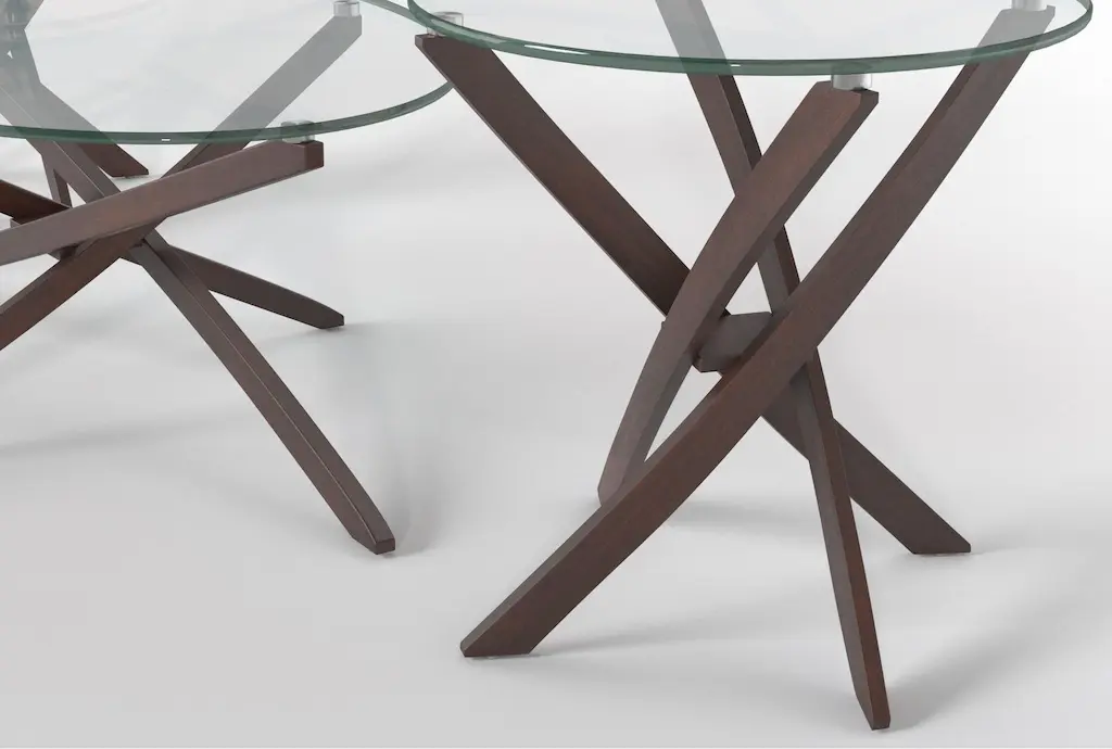 Like art that functions as furniture, our Brisbane occasional tables are true conversation-starters. Oval-shaped glass surfaces allow you to focus on the bases, which feature dramatic forms sculpted with hardwood and veneer legs in an espresso finish. Although you can add books and accessories, it doesn't take much to make these pieces shine.