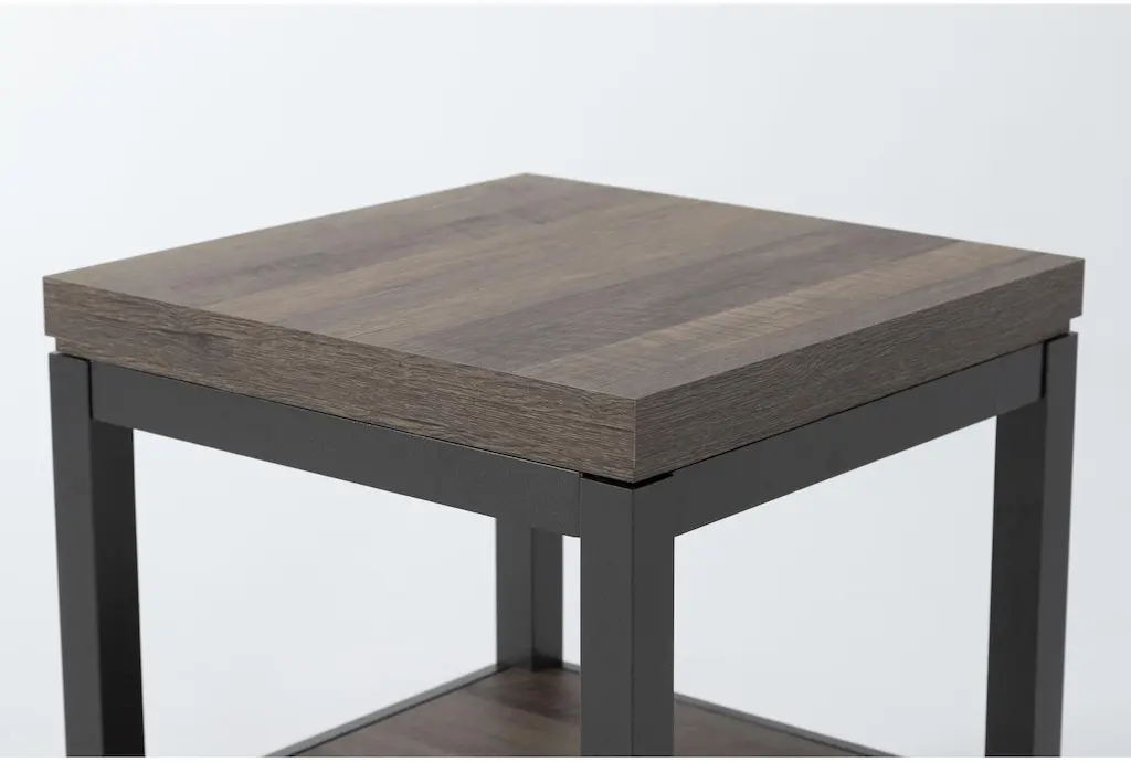 Enhance your living room with the Gilmore 3 Piece Coffee Table Set. This industrial-style set includes a rectangle coffee table and two matching square end tables, all in a warm barnwood finish. The durable laminate composite construction ensures lasting use while providing ample storage space with built-in shelves.