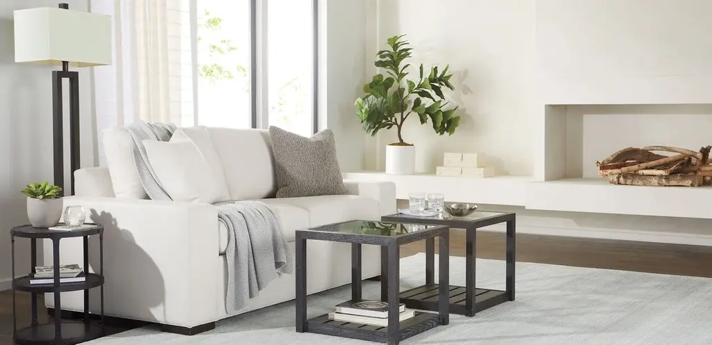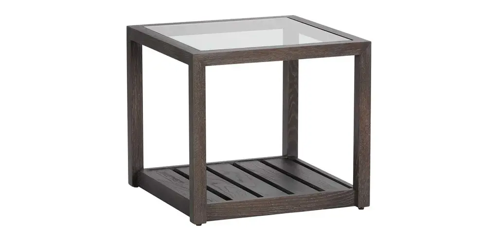 A tempered glass top and a beamed lower shelf give our Lyons bunching table a mix of elegance and rugged industrialism. Made for grouping and now available for Quick Ship in select finishes.