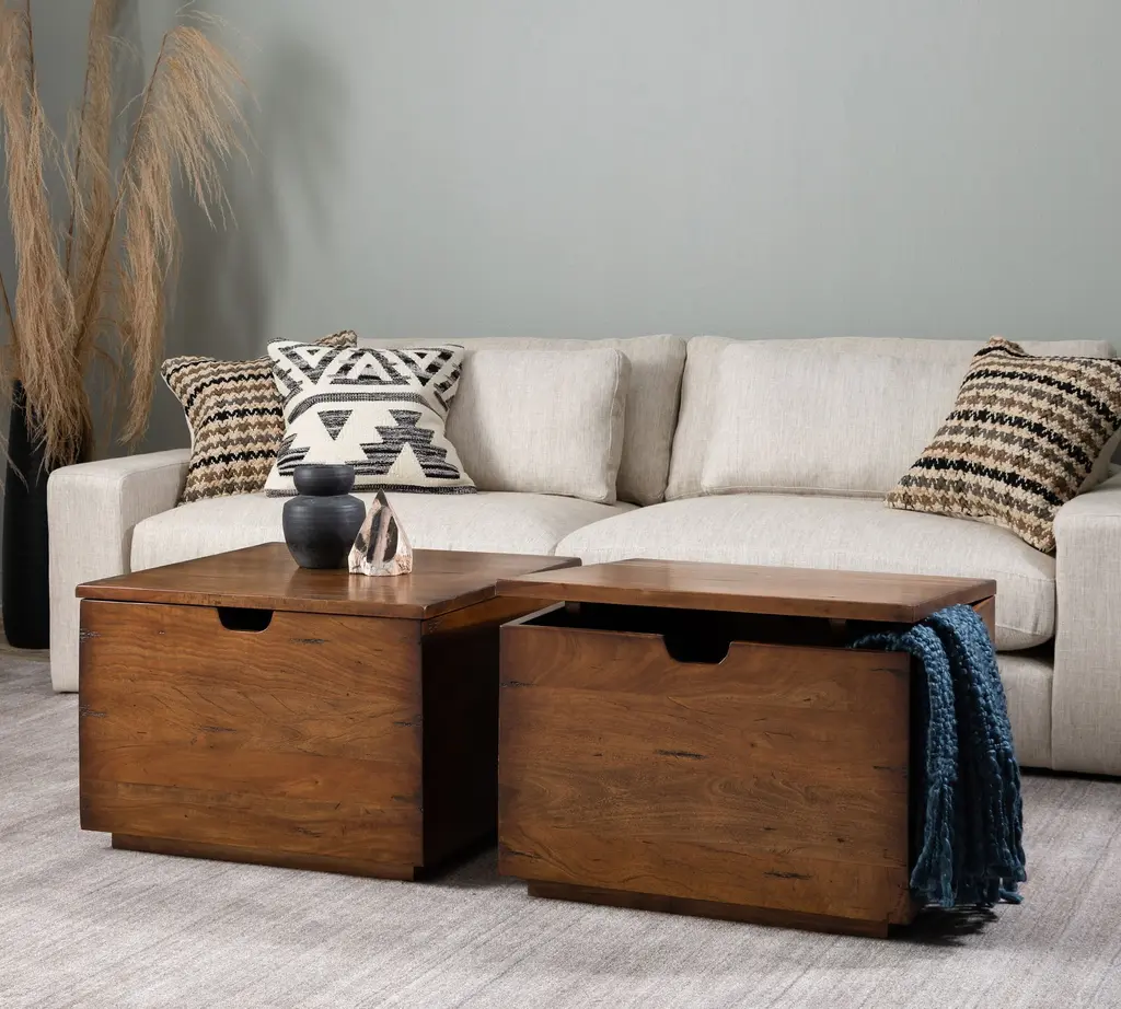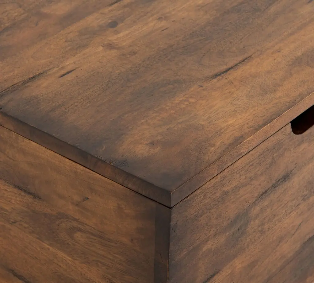 Solidly built using recycled lumber, the Parkview Reclaimed Wood Collection combines rustic appeal with a clean, contemporary design. With a lift-top, the storage bunching table stores everything from blankets to remotes, and is ideal for entertaining, game night and a enjoying morning coffee. Cleverly scaled to be used alone or bunched in twos or threes, it’s a versatile piece that can act as a side table or coffee table.