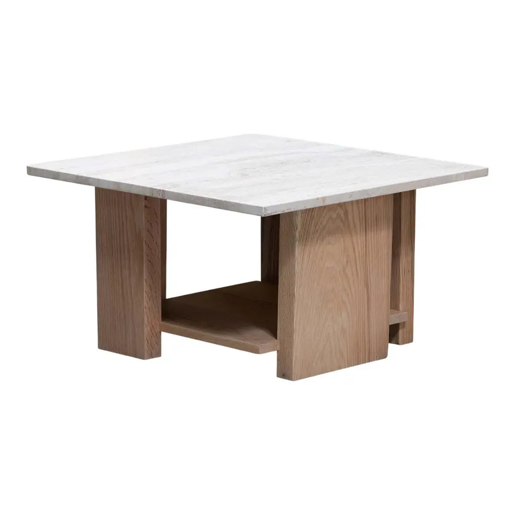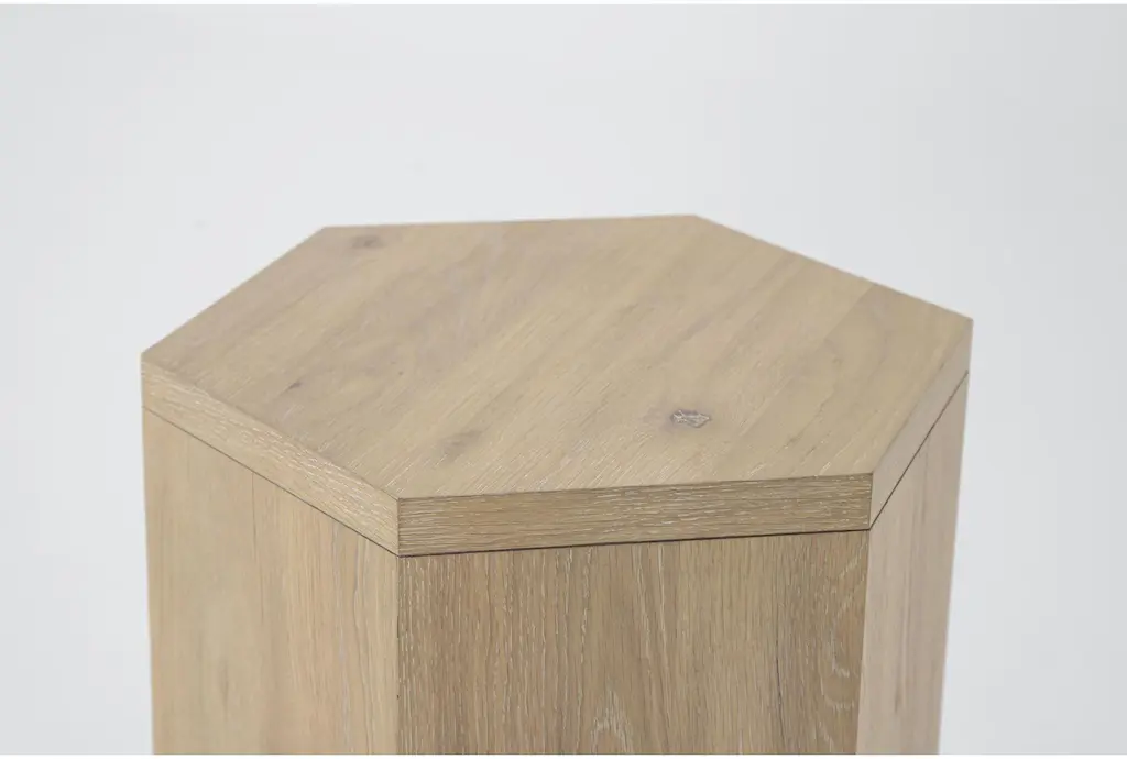 Elevate your living room with the Voyage Natural 3 Piece Coffee Table Set with End & Cocktail by Nate Berkus + Jeremiah Brent. This modern set features a sun drenched oak finish that brings a warm and inviting feel to any space. Crafted from knotty white oak veneer, solid hardwood, and marble, each piece offers a unique blend of durability and style. The hexagon shape of the cocktail table is complemented by the square end table, providing a cohesive look that is both functional and visually appealing.