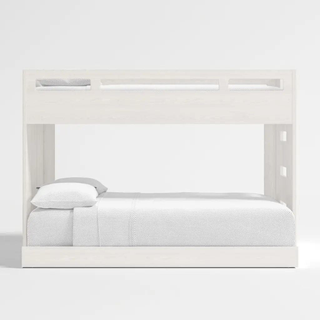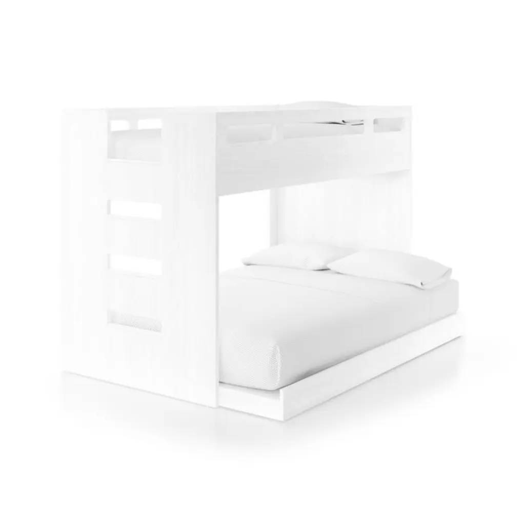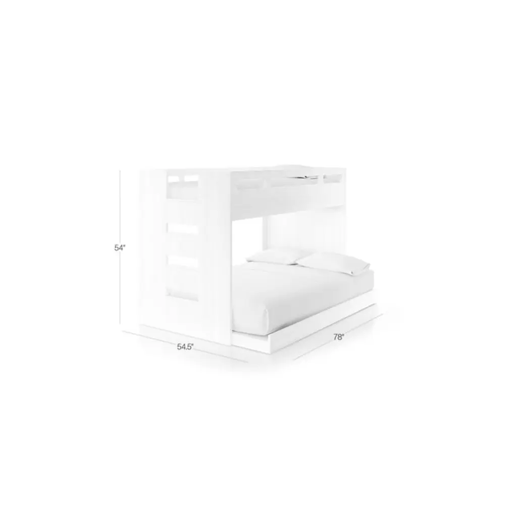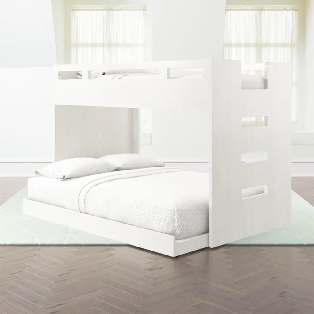 We've created a Bunk Bed with more space saving capabilities than ever before. No, we didn't use magic. We just scaled it down a bit. With a smaller profile than a usual loft bed, this bunk bed is actually a twin loft bed and rolling full bed combo. The unique incorporated ladder on the right side of the loft bed makes it even more compact, while the rolling bed's hidden casters make it easy to maneuver. Plus, the white glaze finish allows the wood's natural grain to show, letting it coordinate with nearly any decor.