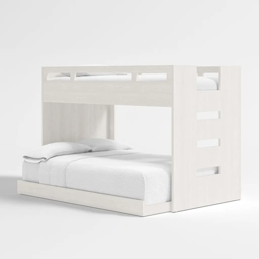 Abridged White Glaze Wood Kids Twin Over Full Bunk Bed With Left Ladder
