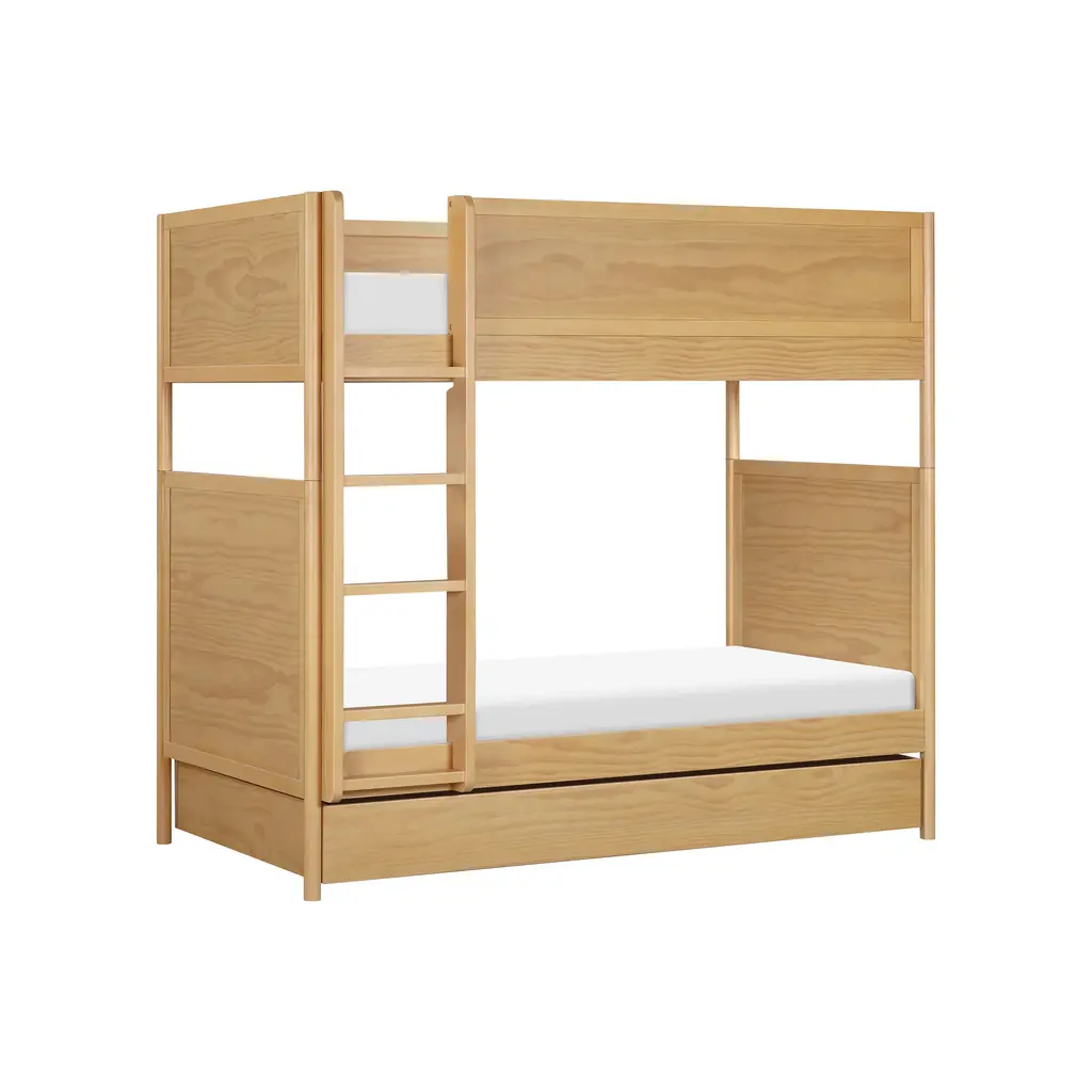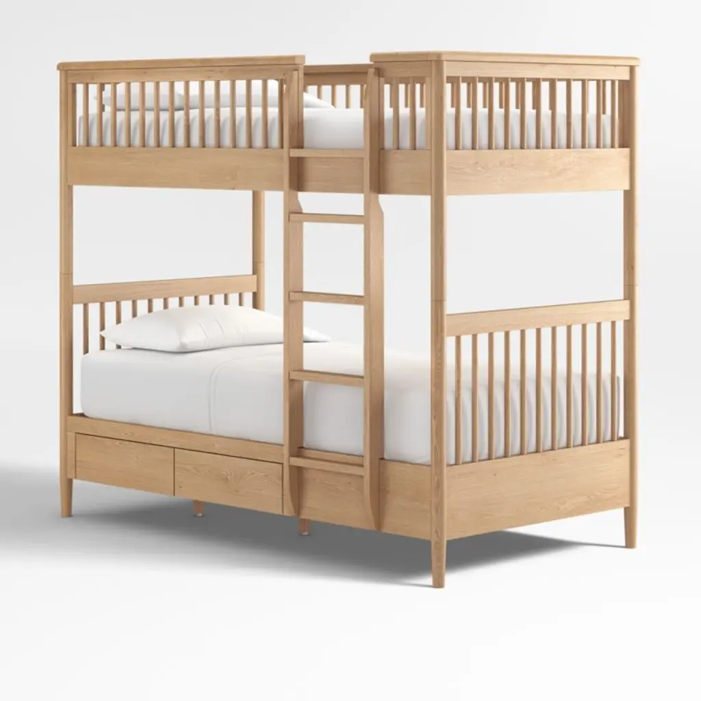From top to bottom, our Beau Bunk Bed is designed for long-lasting appeal. Its warm brown oak frame is complemented by lightly textured upholstered panels at the headboard and footboard, giving the bunk bed a cozy, classic look that never goes out of style. And should your kids' room needs change with time, it can be split up into two stand-alone twin beds.