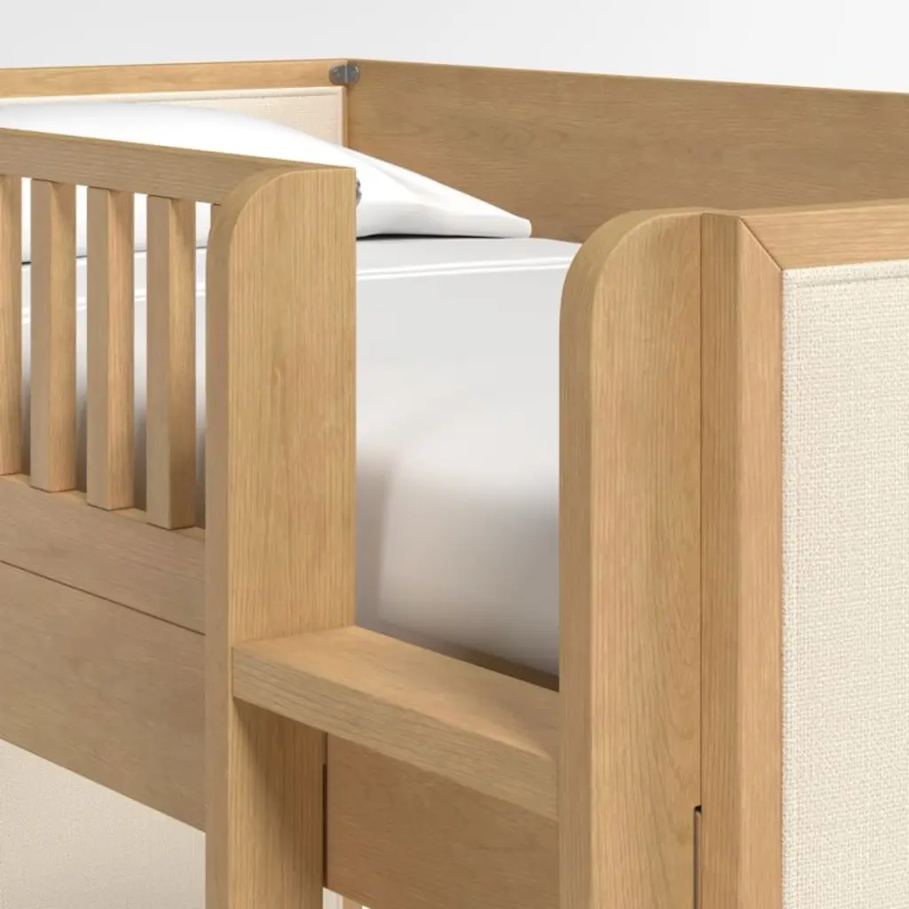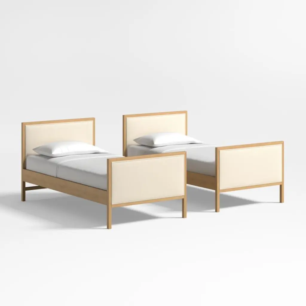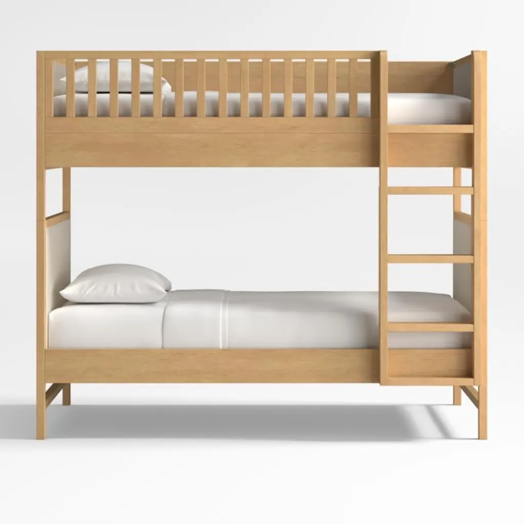 From top to bottom, our Beau Bunk Bed is designed for long-lasting appeal. Its natural oak frame is complemented by lightly textured upholstered panels at the headboard and footboard, giving the bunk bed a cozy, classic look that never goes out of style. And should your kids' room needs change with time, it can be split up into two stand-alone twin beds.