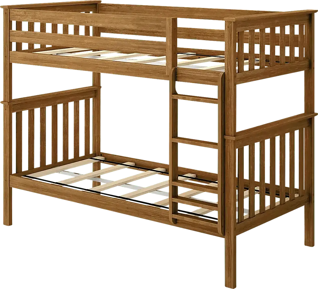 If you need extra sleeping space or you love sleepovers, this Twin Over Twin Bunk Bed is perfect for your home. High-quality, solid pine legs and a strong, durable frame ensures stability and durability for long-term use. Slat kit included so box springs are not required. This bunk bed is designed with a clean silhouette and a hue of elegance. It suits all styles of home decoration, and completes the look of any bedroom.