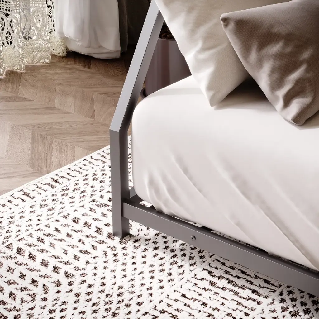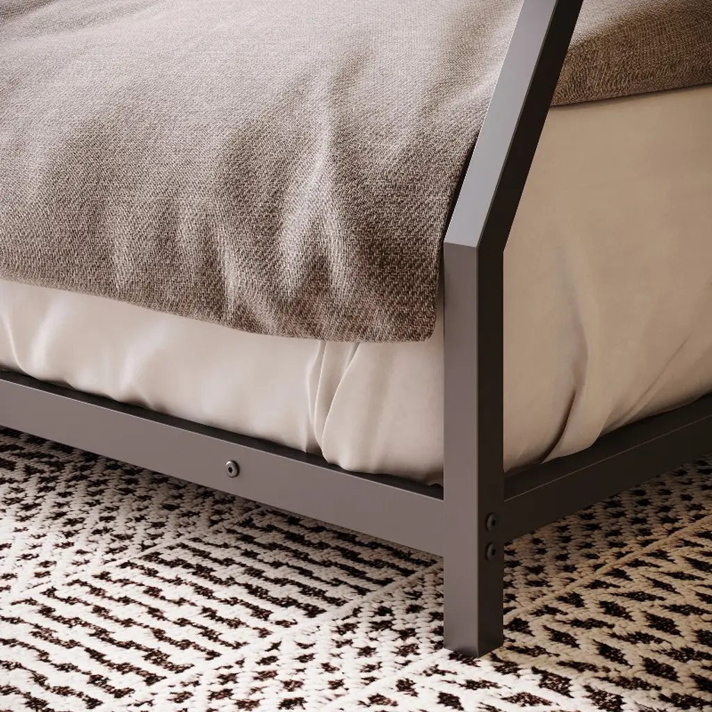 This twin over full bunk bed frame is made of heavy duty metal for rust-proof and durable use for a long time. The floor bunk beds frame are made of thickened steel and slats are available for better wight capacity. Weight capacity of upper bed: 400 lbs, bottom bed:300lbs, ensuring stability and durability for years to come.