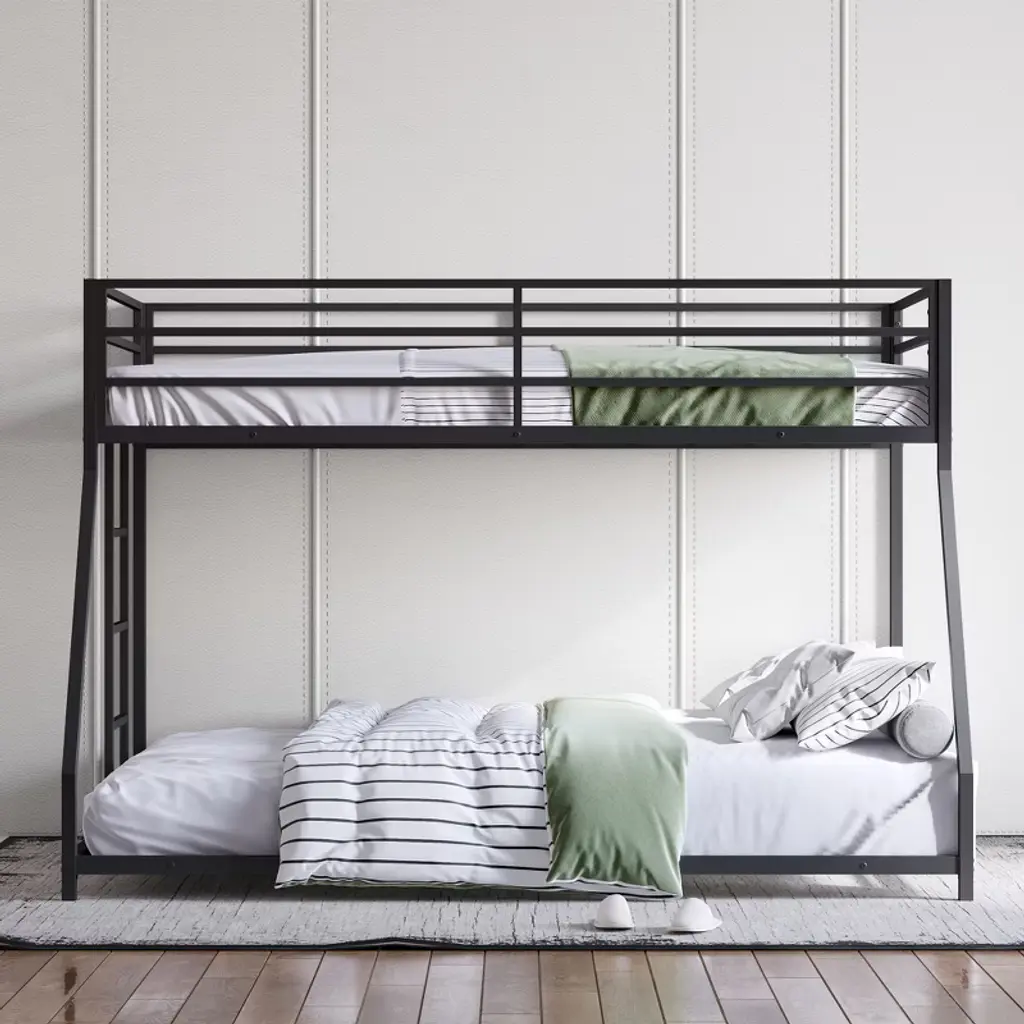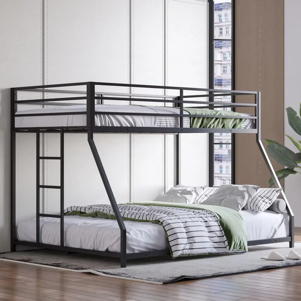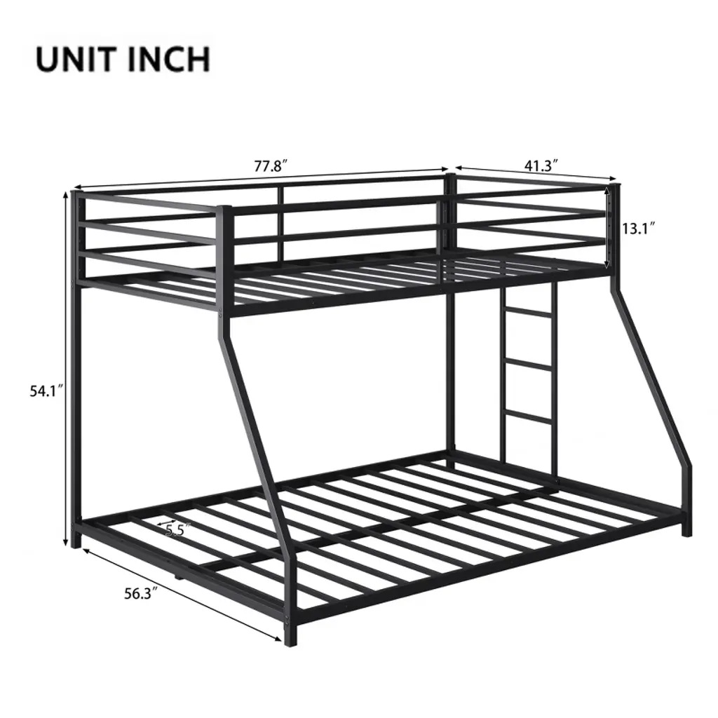 Bellemave Twin Over Full Bunk Beds, Heavy Duty Floor Bunk Beds Twin Over Full Size Bunk Bed With Build In Ladder And Full Length Guardrails, Black