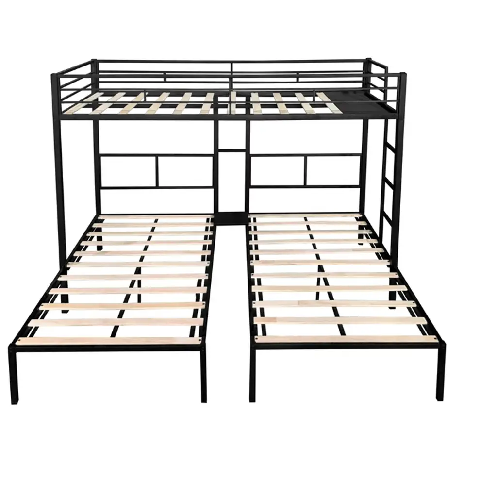 This triple bunk bed combined with 1 twin size upper bunk and 2 twin size bottom bunk.It is perfect for kids to host overnight guests or just to provide your little one with room for friends. This metal triple bunk beds is perfect for multi-child family.