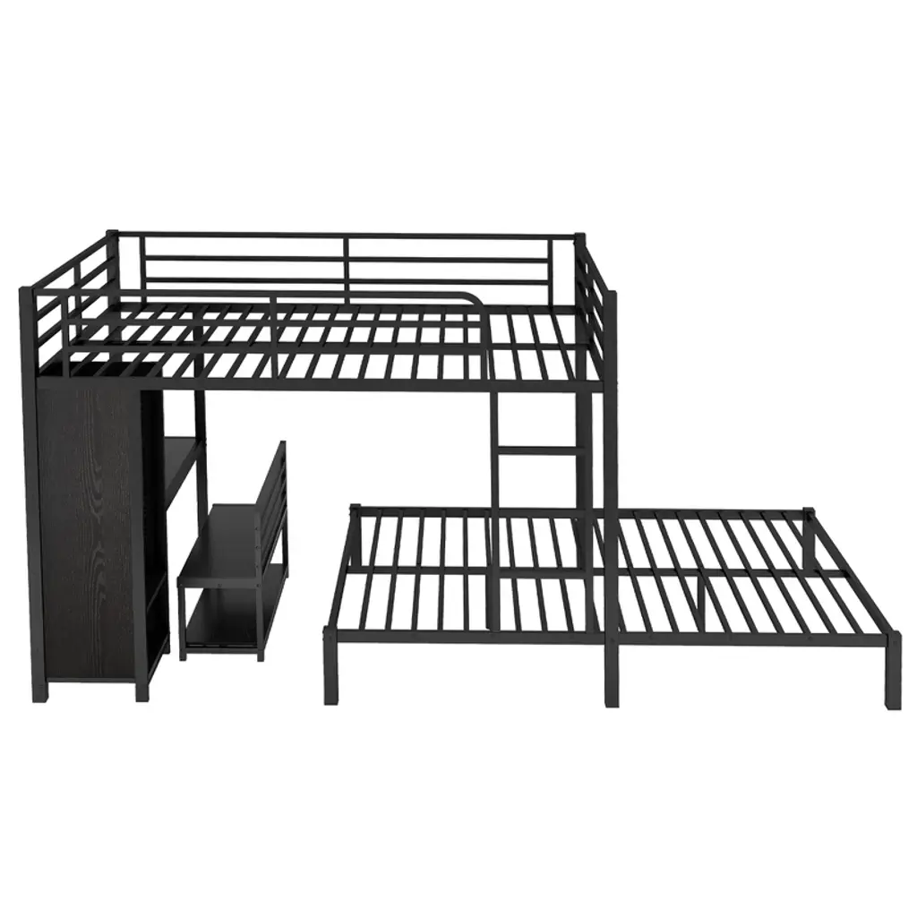 Bellemave Twin Over Twin & Twin Bunk Beds For 3, Twin Xl Over Twin & Twin Bunk Bed Metal Triple Bunk Bed,black