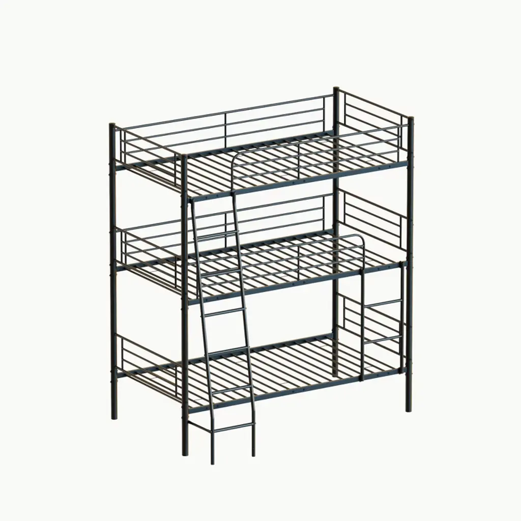 This twin over twin bunk bed is made of heavy duty metal for rust-proof and durable use for a long time. Its modern and minimalist appearance will blend well in any bedroom. The solid construction and metal slats ensure a better stability and greater bearing capacity. Upper Bed Weight Capacity: 250LBS, Bottom Bed Weight Capacity: 350LBS