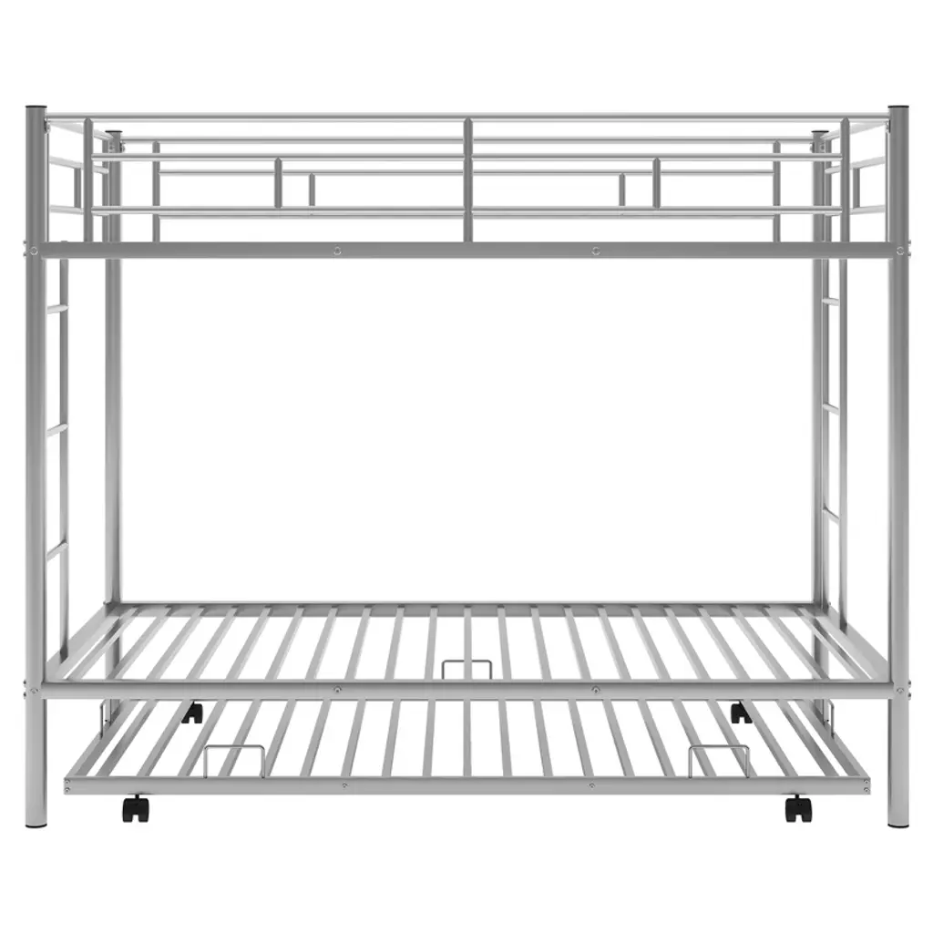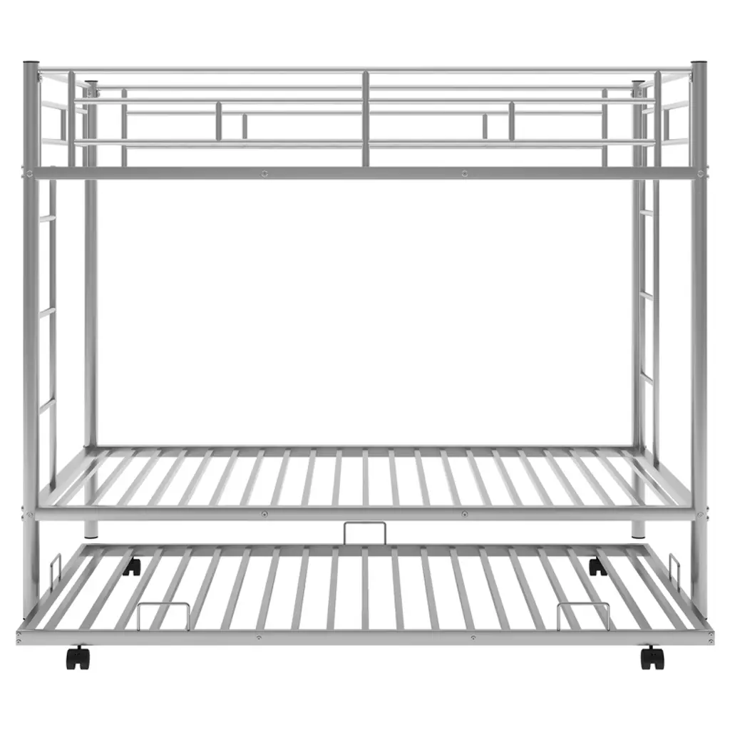 Bellemave Twin Over Twin Metal Bunk Bed With Trundle, Ladder & Guardrail For Kids, Teens & Adults, No Box Spring, Silver