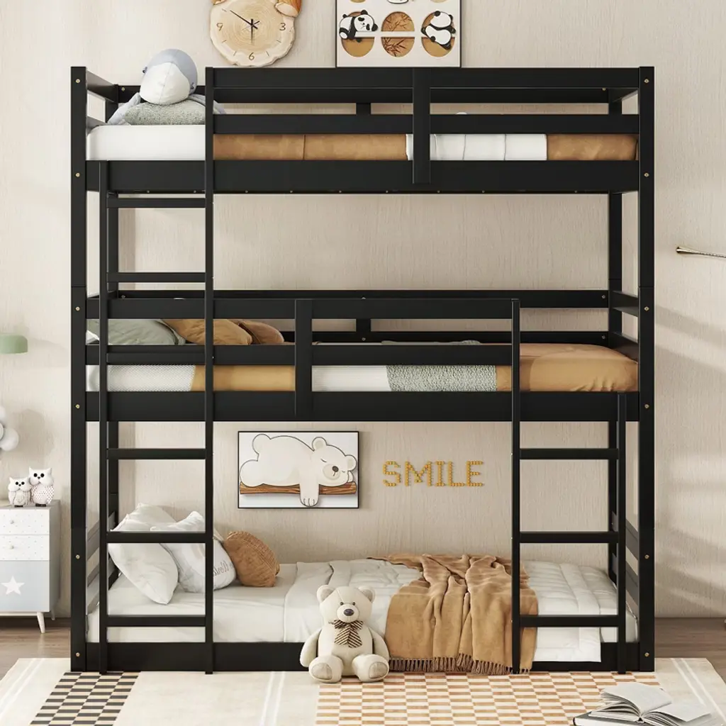 Bellemave Twin Over Twin Over Twin Triple Bunk Bed For 3 Kids,solid Wood Twin Size Bunk Beds With Two Built-in Ladders,detachable,black