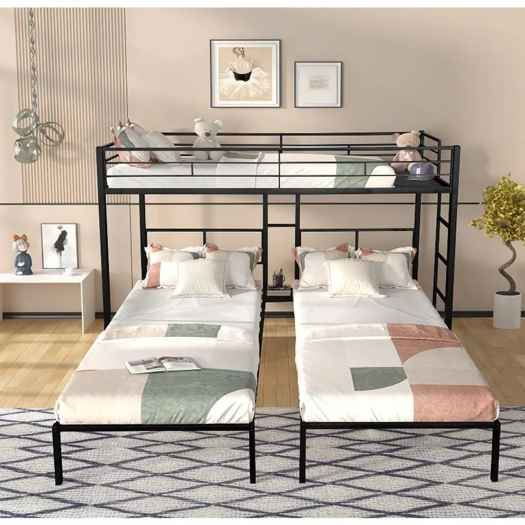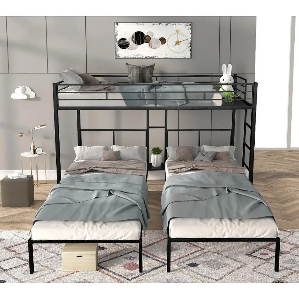 Triple Bunk Bed for 3 Kids£ºThis triple bunk bed fits neatly into any corner,optimizing floor space while offering three separate twin sleeping areas. It¡¯s the ideal solution for shared bedrooms, vacation homes, or growing families.This metal triple bunk beds is perfect for multi-child family.
