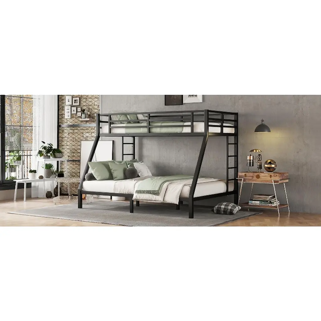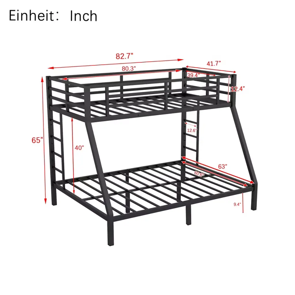 Feature upper bed is Twin XL size and bottom bed is queen size. The metal bunk bed constructed with a sturdy quality and thicker steel frame that for stability and durability, make the bunk bed not wobbling and allowing users to sleep soundly.