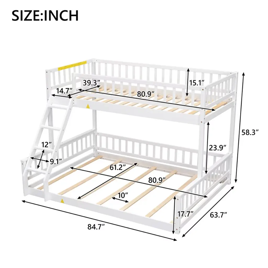 Bellemave Twin Xl Over Queen Bunk Bed Queen Size Floor Bunk Beds With Inclined Ladder And Guardrails, White