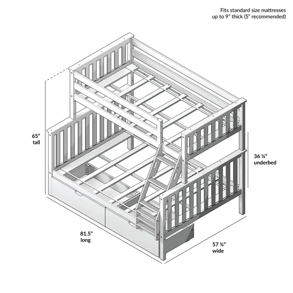 Solid 100% knot-free, New Zealand Pine wood construction and the flexibility to convert these bunks into separate beds set the bunk beds apart. The two included under-bed storage drawers provide great additional storage space and roll-on casters.