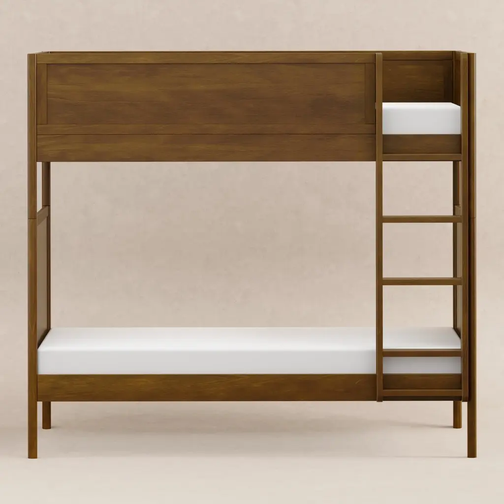 With its warm wood tones and a relaxed, boho-inspired aesthetic, the Bondi Convertible Bunk Bed from Babyletto is a flexible solution for a growing family. This charming bunk features a sleek silhouette with curved accent panels and is consciously crafted from sustainably sourced poplar wood. GREENGUARD GOLD Certified to support cleaner indoor air, it’s designed with ultimate flexibility in mind—the ladder can be placed on either side, and the bunk easily converts into two separate twin beds. Highlights:
