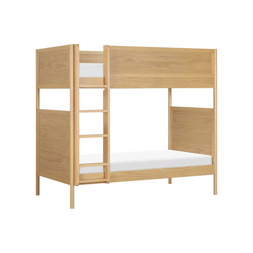 With its warm wood tones and a relaxed, boho-inspired aesthetic, the Bondi Convertible Bunk Bed from Babyletto is a flexible solution for a growing family. This charming bunk features a sleek silhouette with curved accent panels and is consciously crafted from sustainably sourced poplar wood. GREENGUARD GOLD Certified to support cleaner indoor air, it’s designed with ultimate flexibility in mind—the ladder can be placed on either side, and the bunk easily converts into two separate twin beds. Highlights: