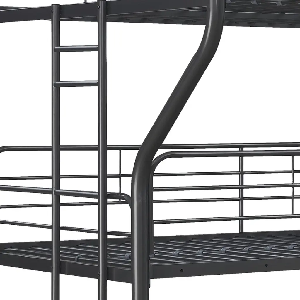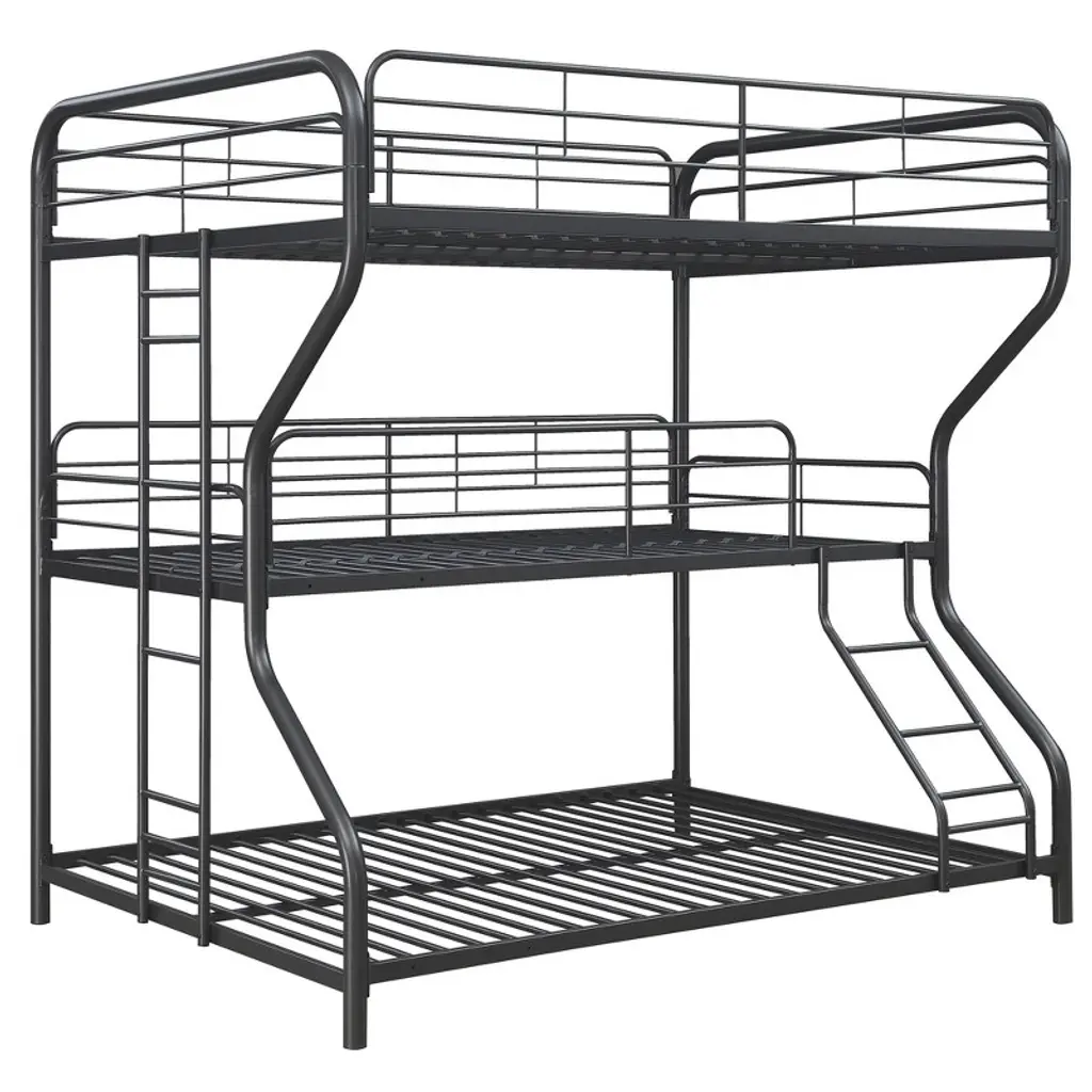 Cavinas Full-twin-full Metal Triple Bunk Bed,modern 3 Bunk Bed For Kids,side Ladder And Full-length Guardrail,no Box Spring Needed,black