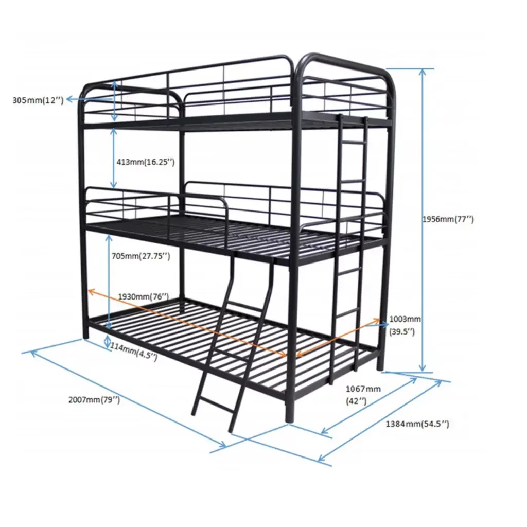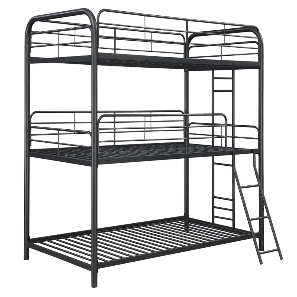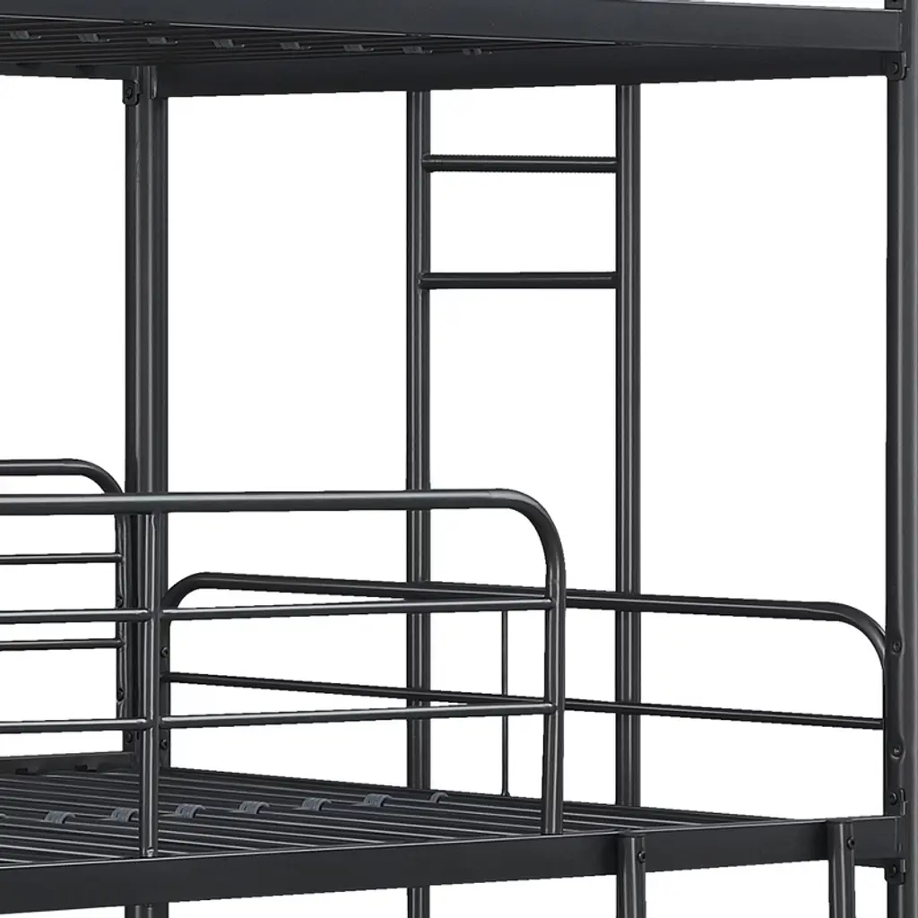 Maximize space with this triple bunk bed, vertically accommodating 3 sleepers while saving 70% floor area. Designed for safety with full-length guardrails and a sturdy metal ladder, it features generous 27-inch spacing between bunks for comfortable sitting. The lightweight yet durable metal frame requires no box spring and assembles quickly with clear instructions—perfect for dorms, rentals, or growing families.