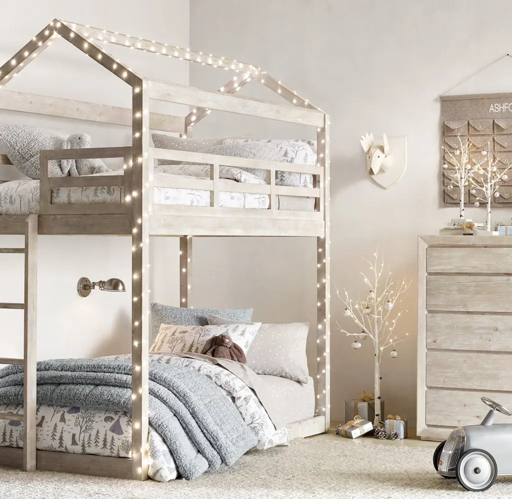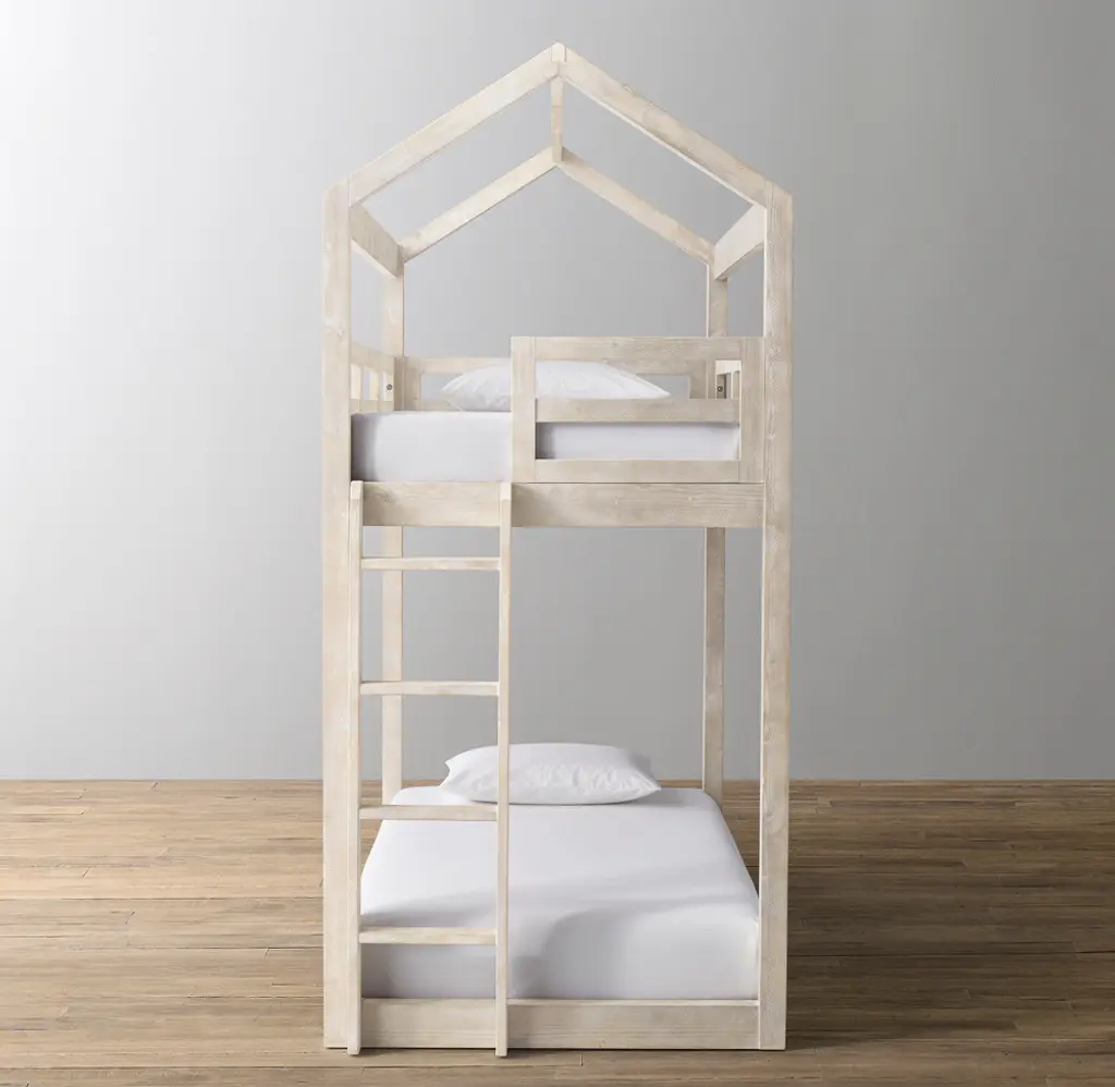 The simple, A-shaped frame of an iconic American barn inspired our bunk, which features stout beams on the long sides and triangular roof trusses at either end. GREENGUARD Gold Certified. Meets or exceeds stringent chemical emissions standards. Learn more.