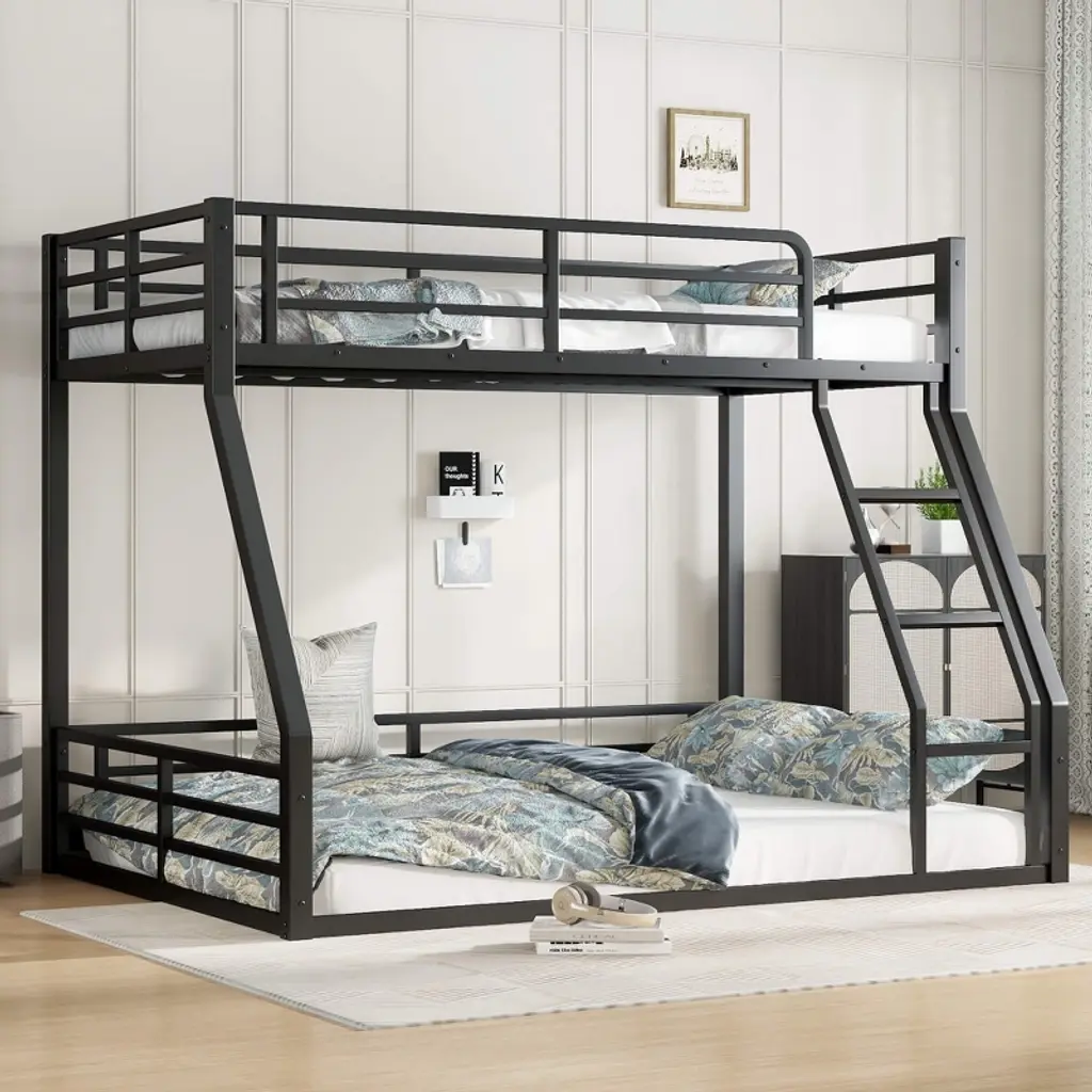 This full-over-full metal bunk bed combines durability with modern design, featuring a sturdy tubular metal frame and built-in ladder. Ideal for saving space in bedrooms, dorms, or shared rooms, it provides secure and comfortable sleeping for kids, teens, or adults while adding a playful yet functional vibe.