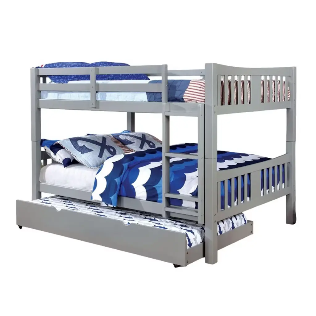 Product Features TransitionalSolid Wood, Wood Veneer, OthersAttached Ladder13 Pc. Slats Top & BottomRails with Insert & Lock Joint StructureTrundle-Not IncludedListing Include: 1pc Bunk Bed Only Product Dimension Bunk Bed: 81 3/8"W X 58"D X 60"H Descriptions This full over full bunk bed includes an attached ladder for easy access to the upper bed. It can be paired with a versatile trundle and drawer companion underneath, sold separately. MATTRESS AND TRUNDLE: NOT INCLUDED. Simple Assembly Required.