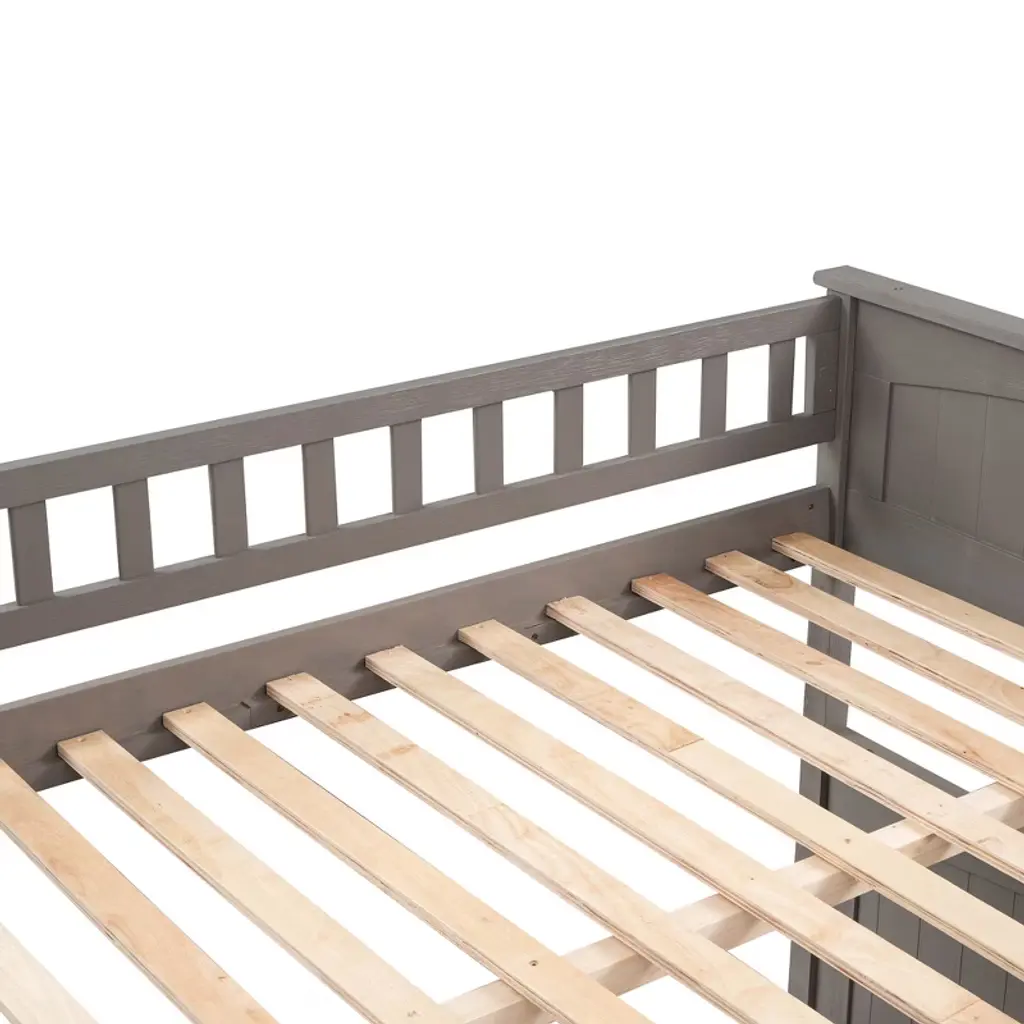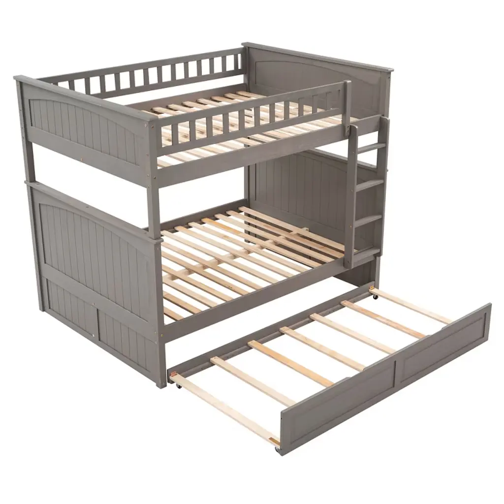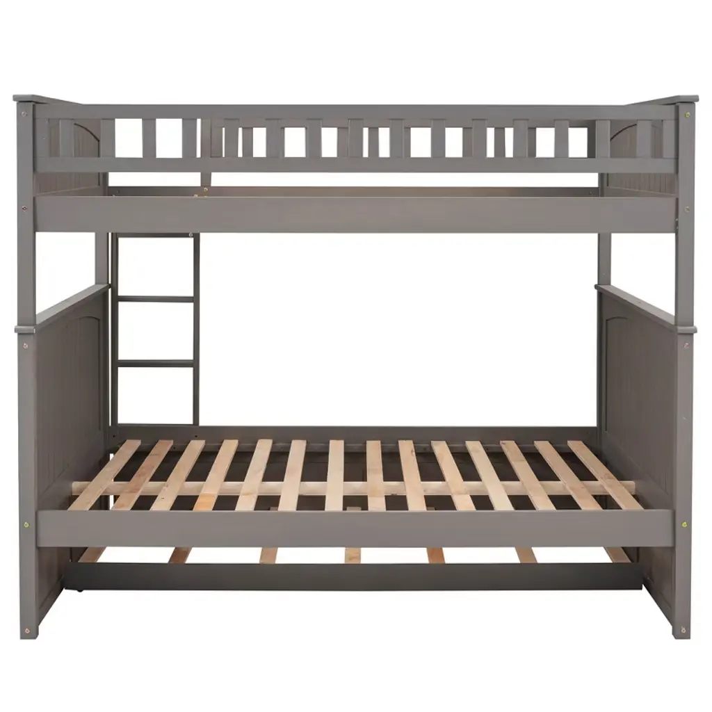 Full Over Full Bunk Bed With Trundle, Full Size Wood Bunk Bed Frame For Kids And Teens, Gray