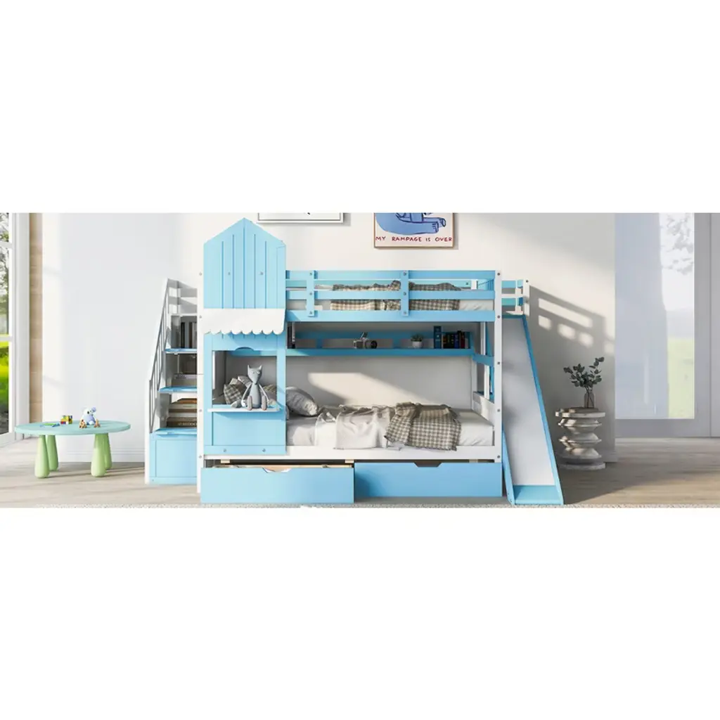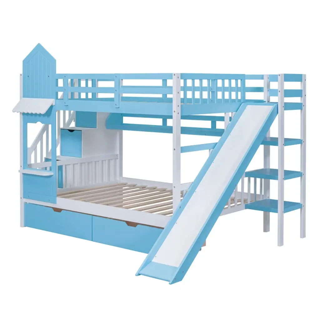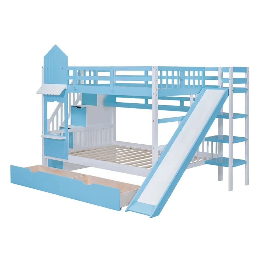 Full-over-full Castle Style Bunk Bed With 2 Drawers And 3 Shelves