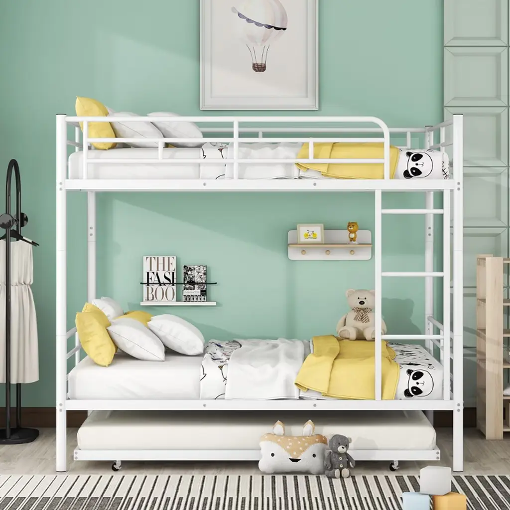 The simple yet contemporary bunk bed is a modern classic, featuring a streamlined iron-crafted frame complimented by an eye-catching chrome finish. Manufactured with support you can rely on, the bunk bed is constructed with a sturdy Quality Tested iron frame that eliminates excess wobbling while adding solid stability and durability allowing users to sleep soundly.An ideal space-saver and a perfect addition for a growing family, the bunk bed efficiently accommodates little ones, and young teens, allowing them the freedom and space to host friends.This bunk bed will be a beautiful and practical piece in your bedroom.