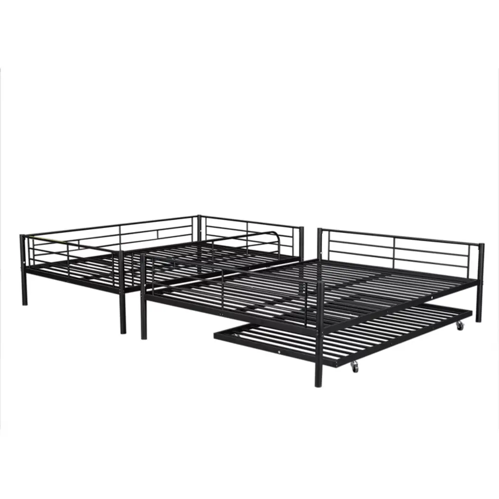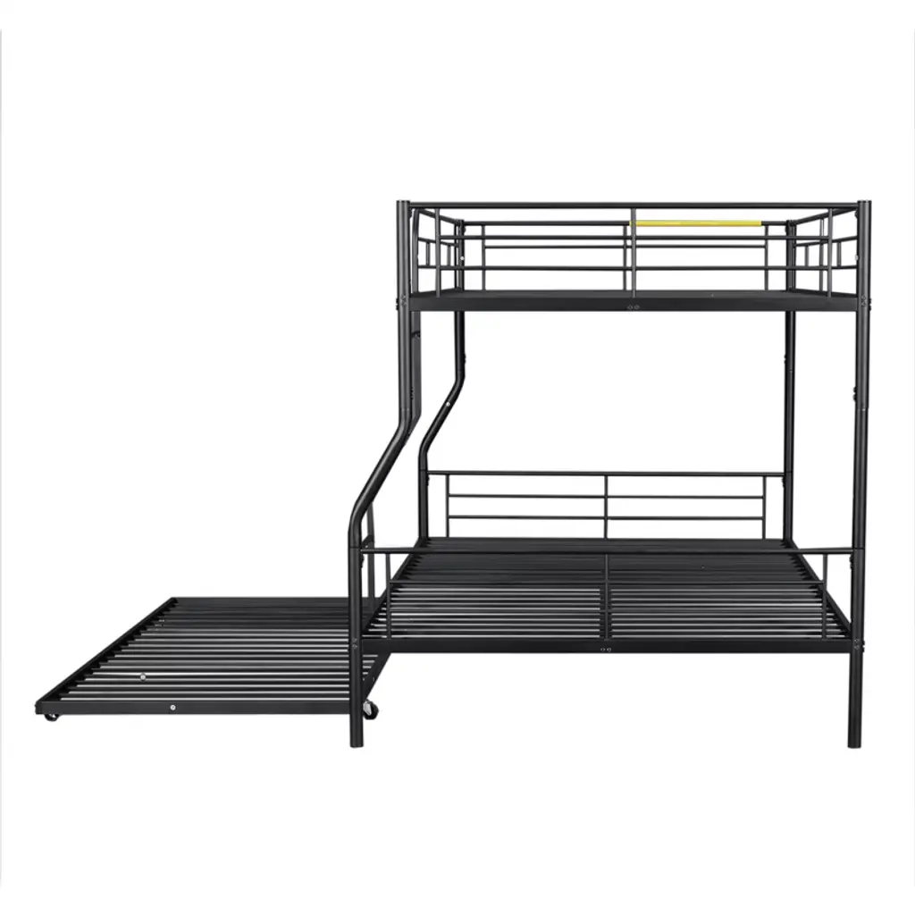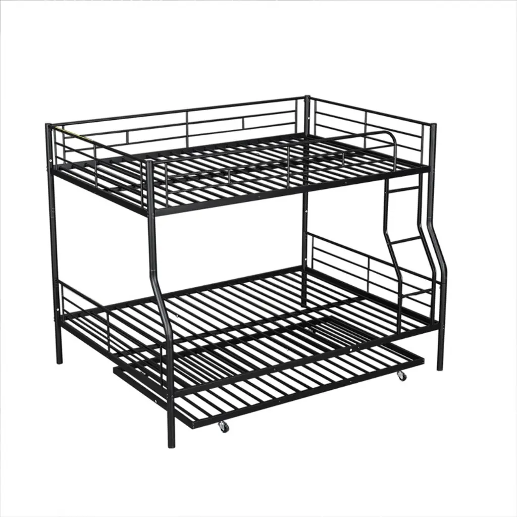Full Xl Over Queen Size Metal Bunk Beds With Trundle, Heavy Duty Bunk Bed Frame For Kids Teens Adults, Black