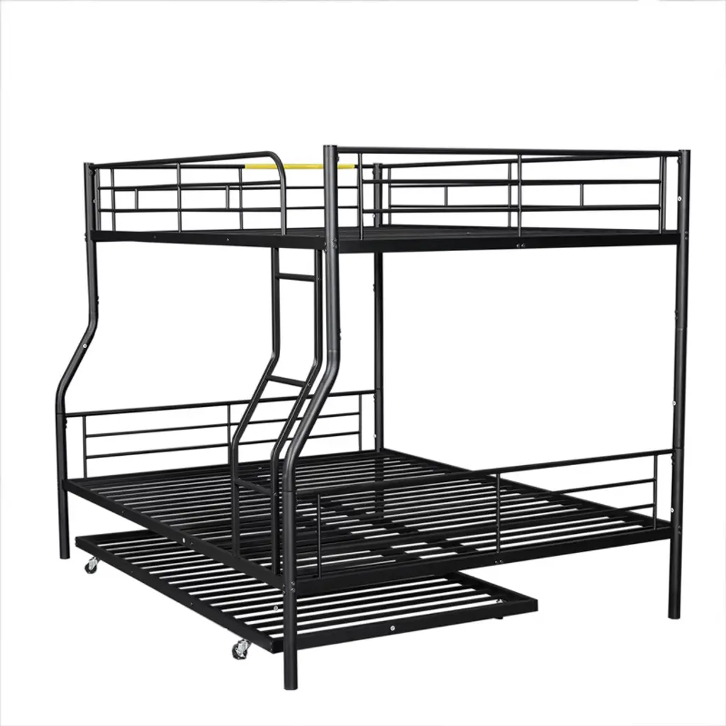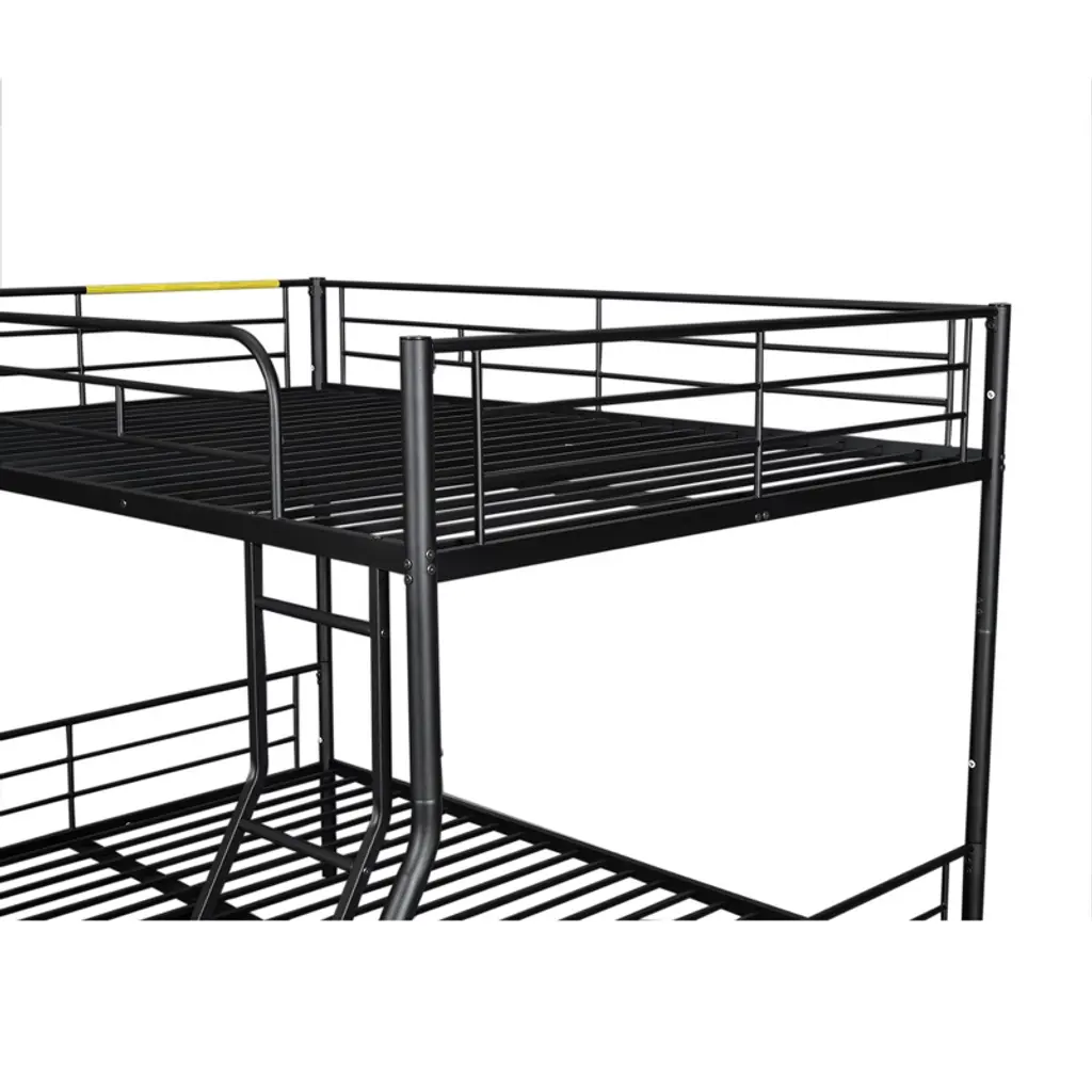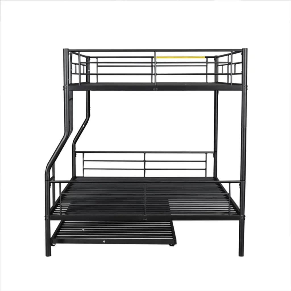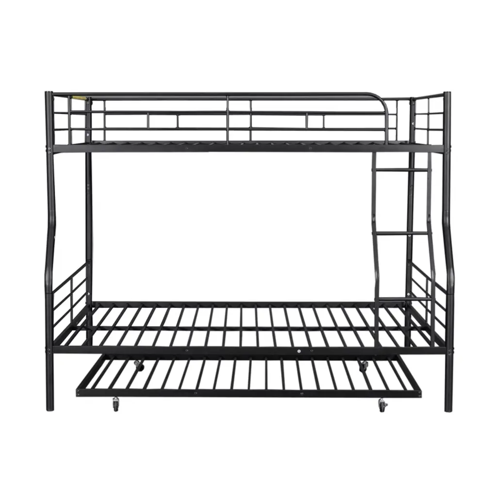 Full Xl Over Queen Size Metal Bunk Beds With Trundle, Heavy Duty Bunk Bed Frame For Kids Teens Adults, Black