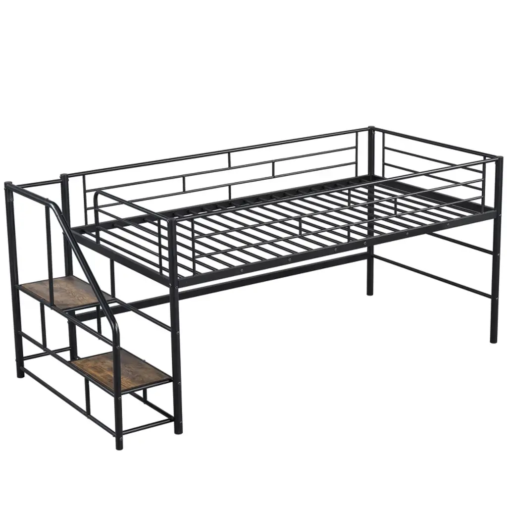 Gulches Contemporary Multi-function Twin Over Full Metal Bunk Bed, Black ̈C Stylish Design With Convertible Bottom