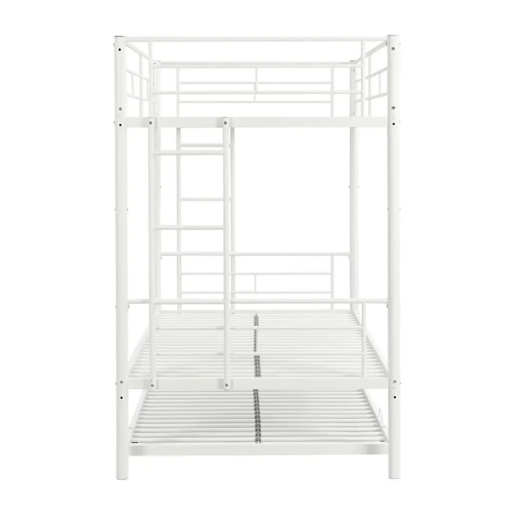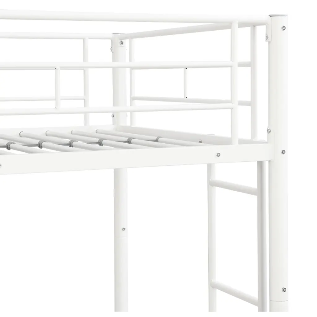 Gulches White Metal Bunk Bed with Trundle adds modern style and space-saving versatility to any bedroom. Built with a strong steel structure for durability, stability, and quiet use, it supports up to 250/350/350 LBS. Safe stairs make it kid-friendly, and no box spring is required¡ªworks with all mattresses (including memory foam). Ships as 1 set in 1 carton, with clear instructions, all parts, and tools for easy assembly.