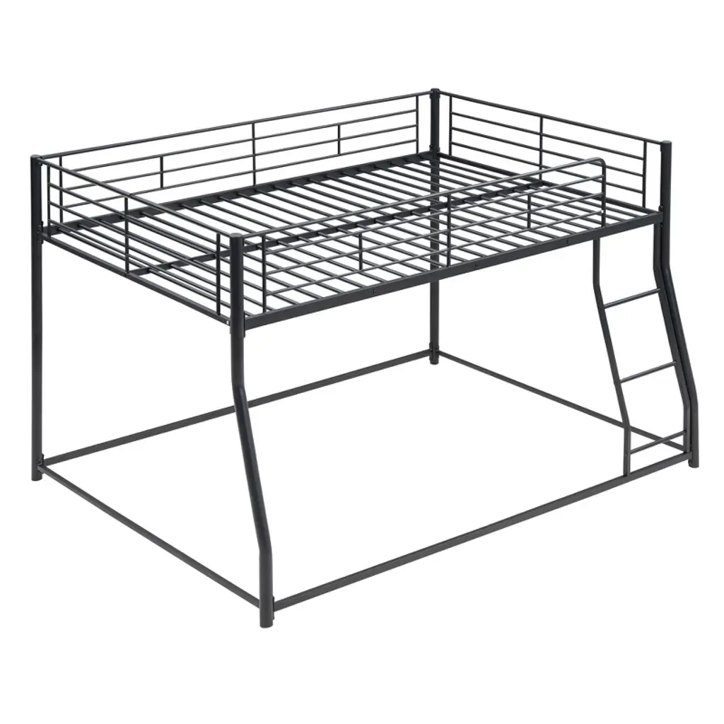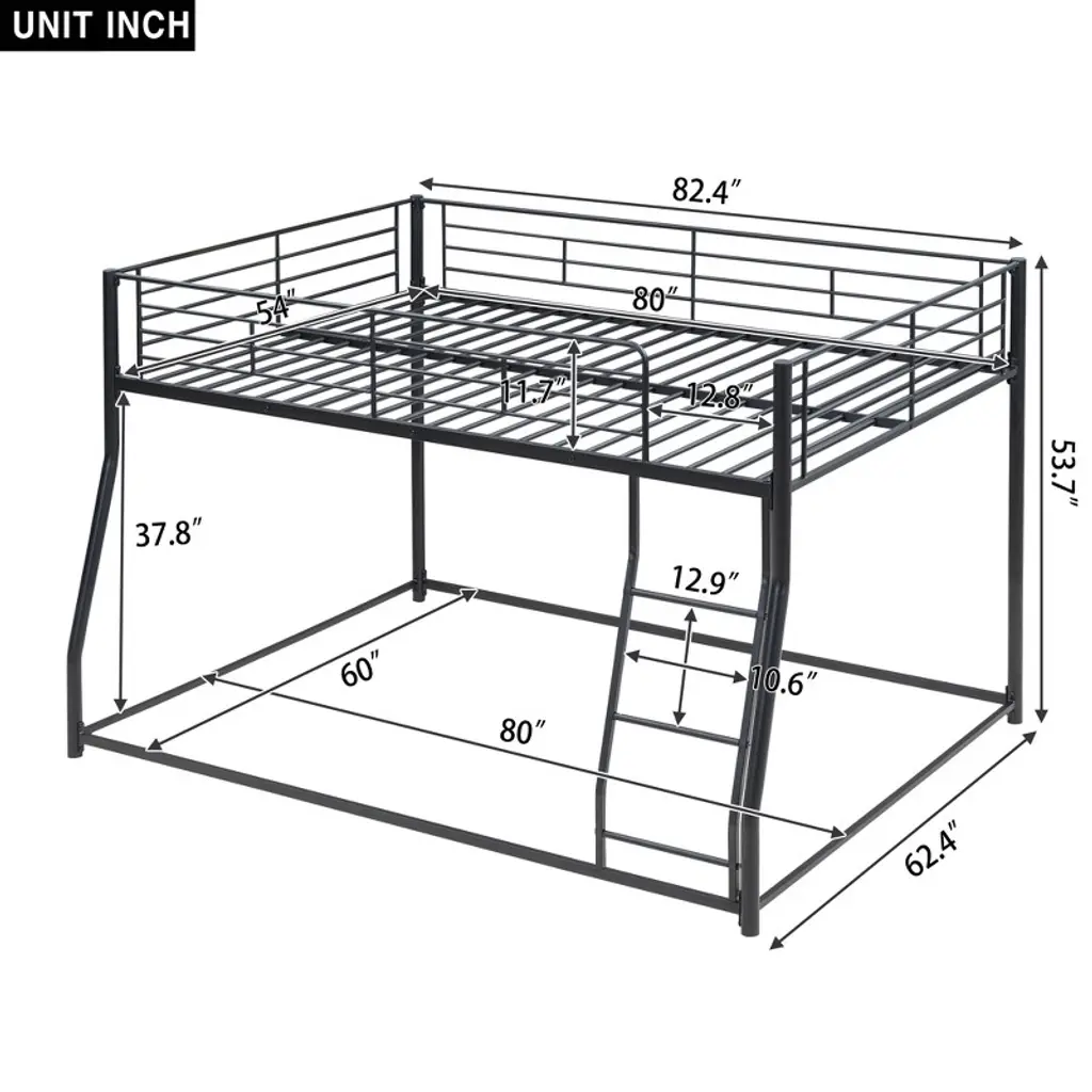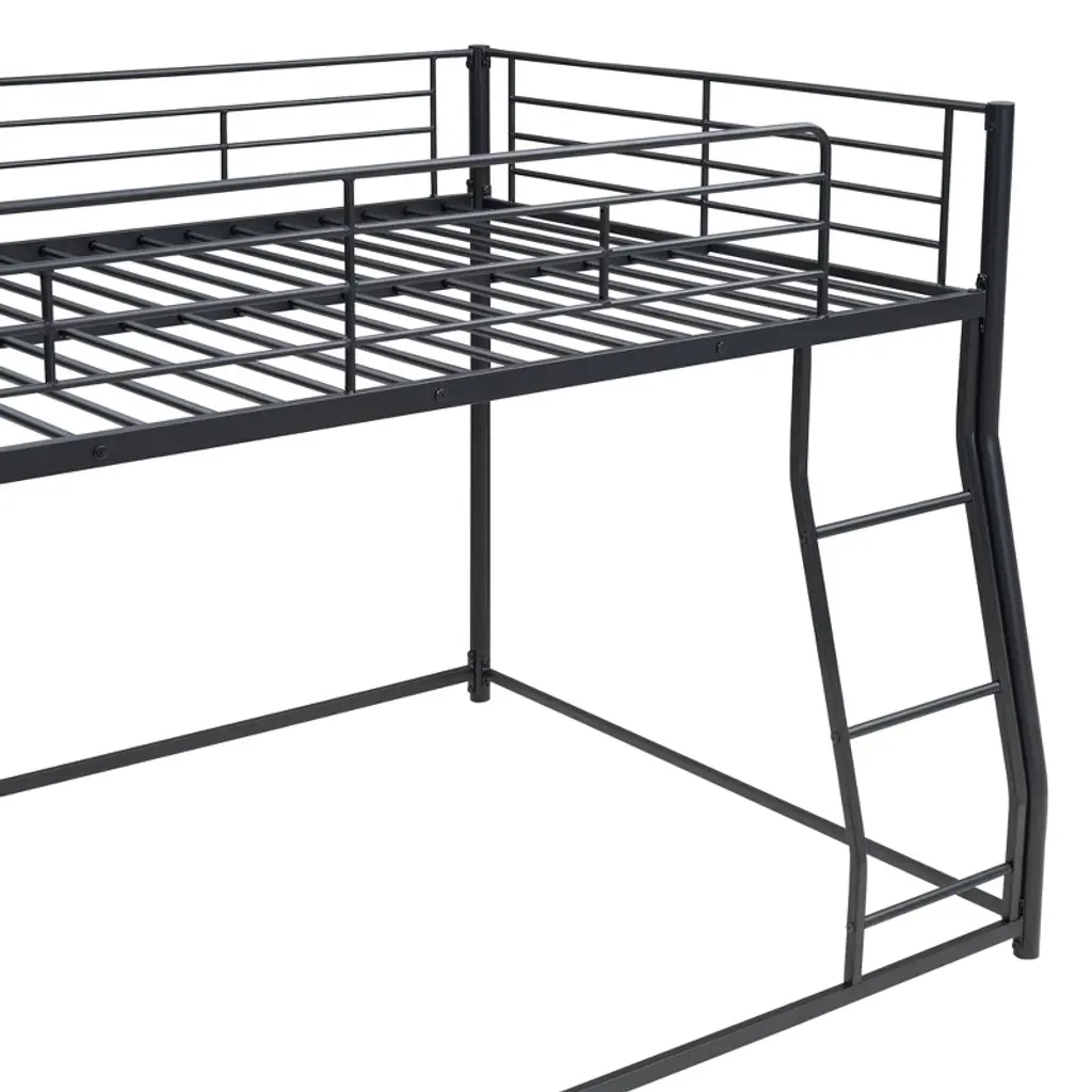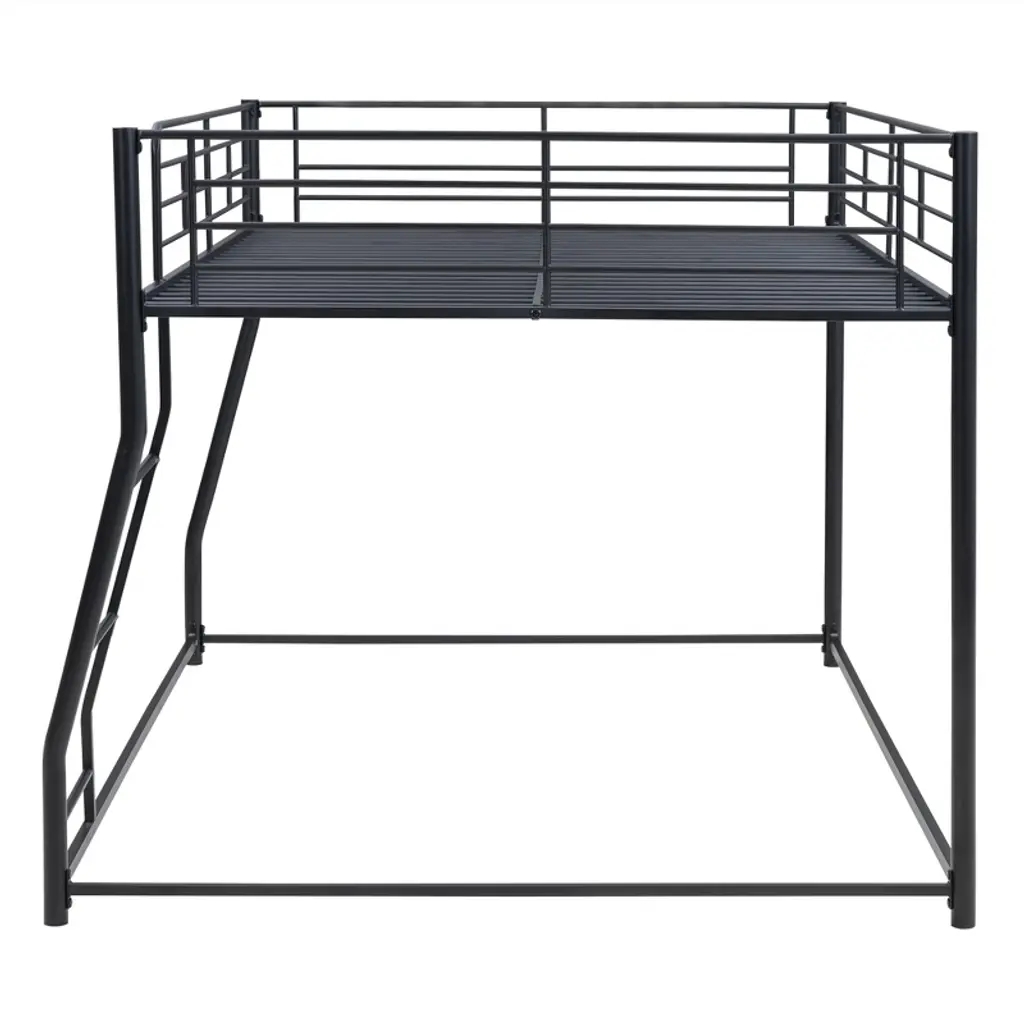 Gulches Black Metal Floor Bunk Bed blends modern style with functionality, featuring a Full XL top bunk over a Queen bottom¡ªideal for bedrooms or guest rooms. Its sloping stairs reduce climbing difficulty and foot discomfort. Amazingly simple to assemble, it comes in one convenient box. Assembly is required to set up this sleek, space-saving bunk bed.