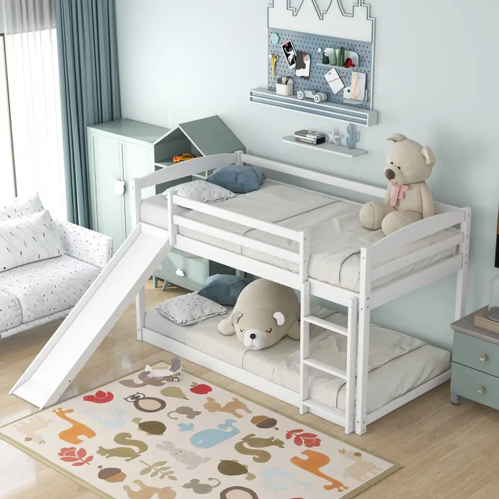 Gulches Twin Over Twin Bunk Bed - Convertible Slide & Ladder, Sturdy Wooden Frame, Safe Lacquer Finish, White