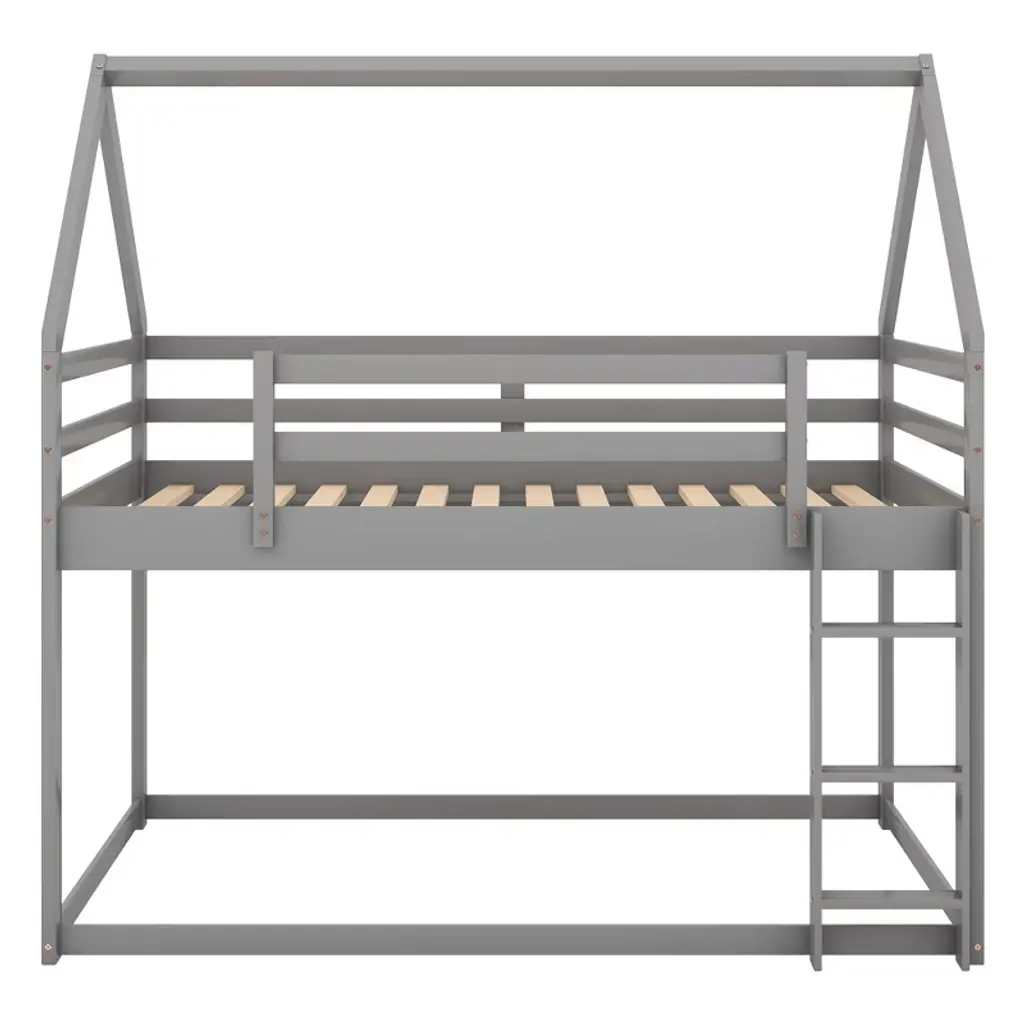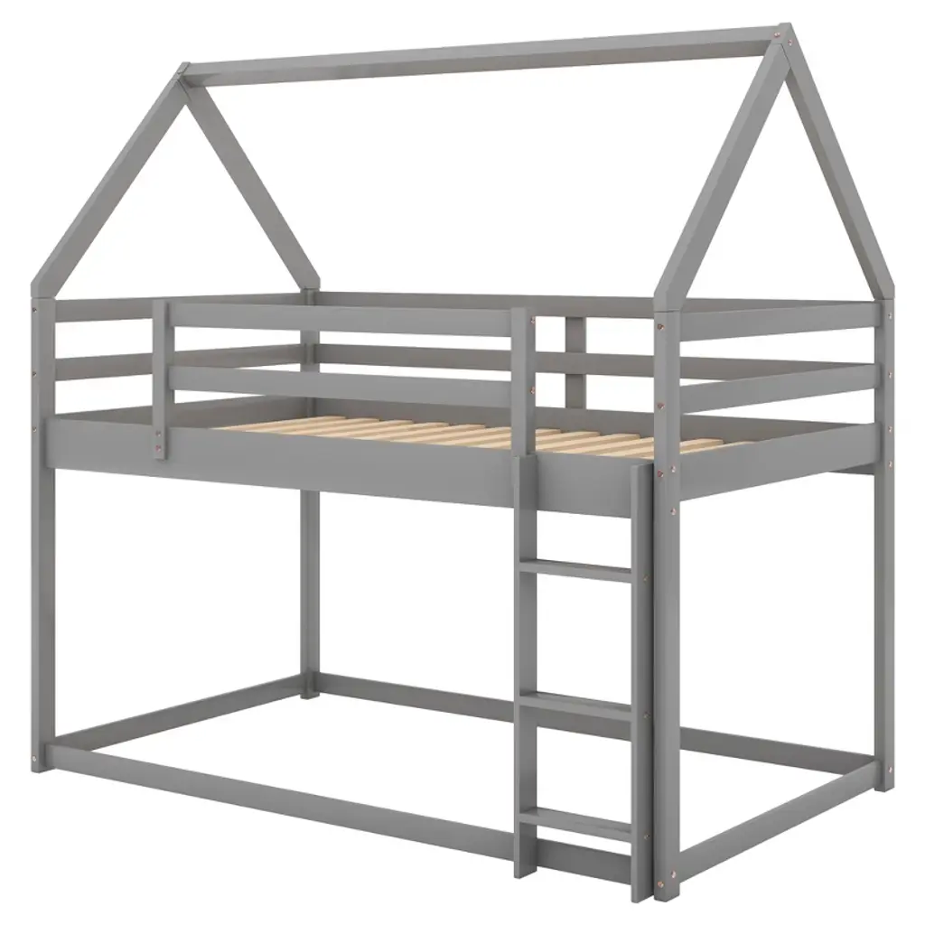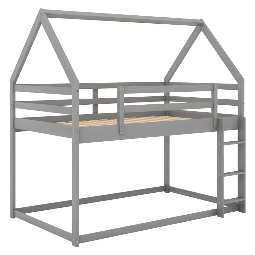 Gulches Twin Over Twin Low Bunk Bed, House Bed With Ladder , Gray