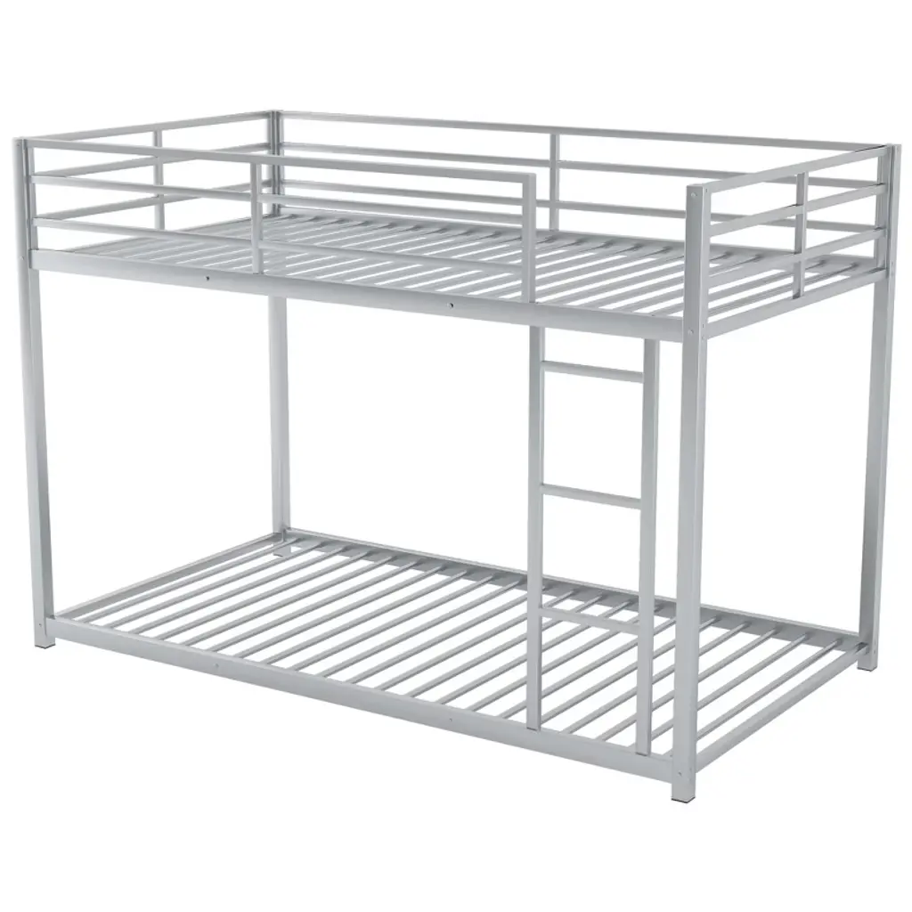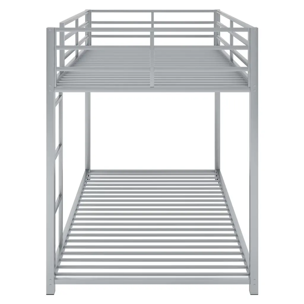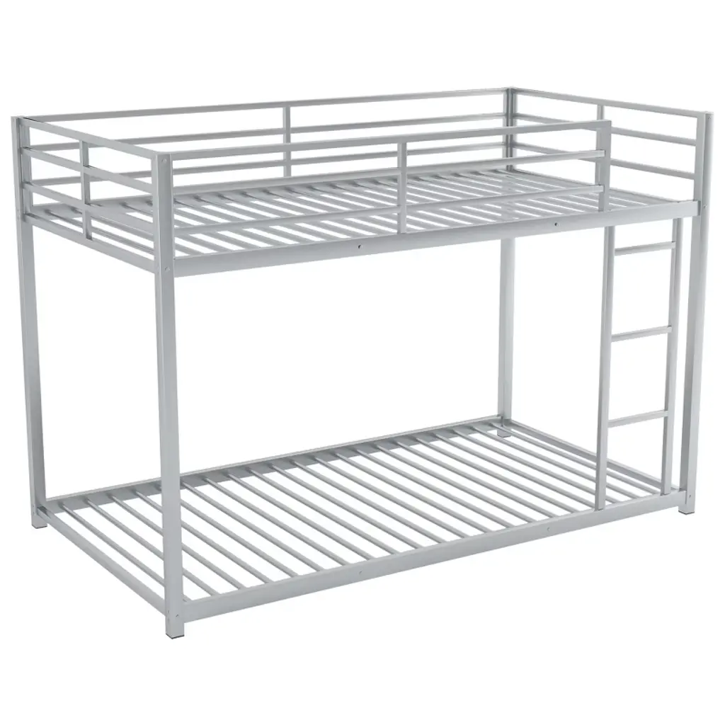 Gulches Twin Over Twin Low Metal Bunk Bed - With Built-in Ladder, Full-length Guardrails, Silver