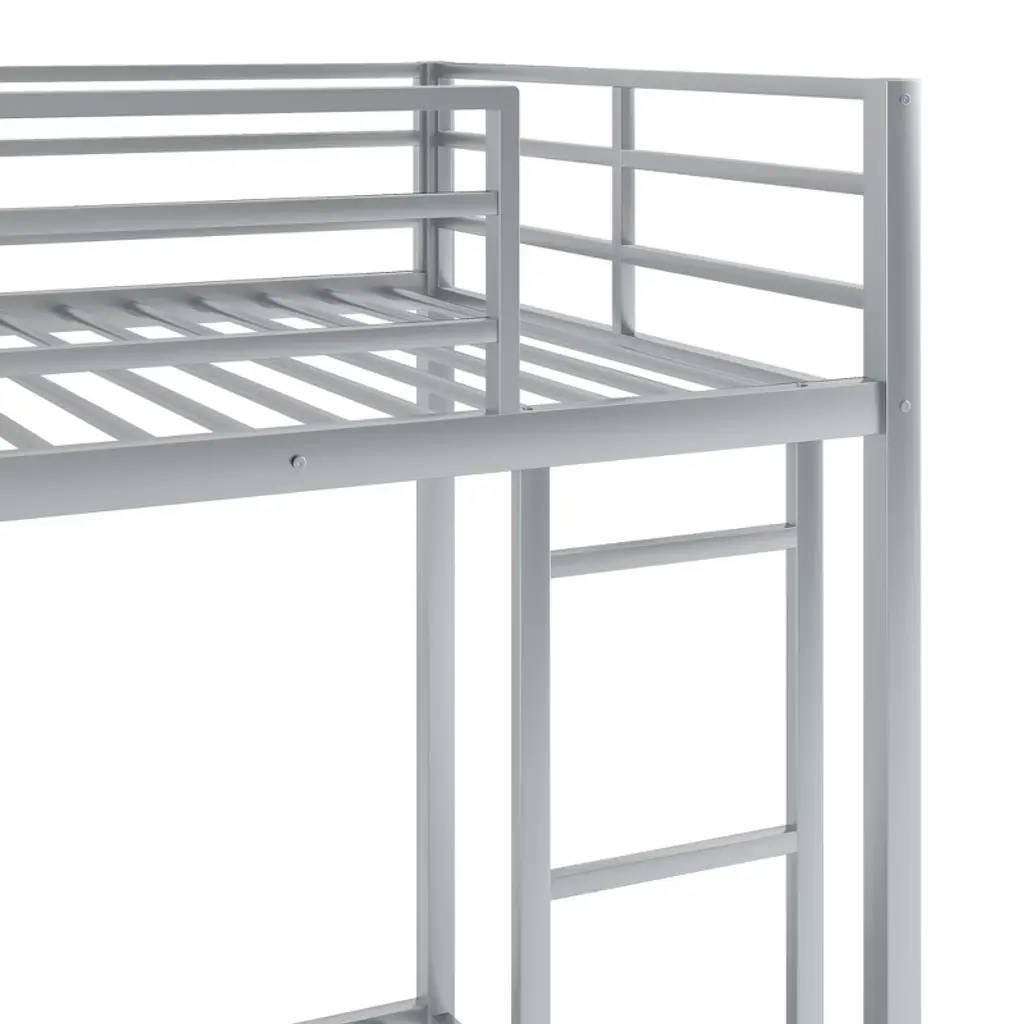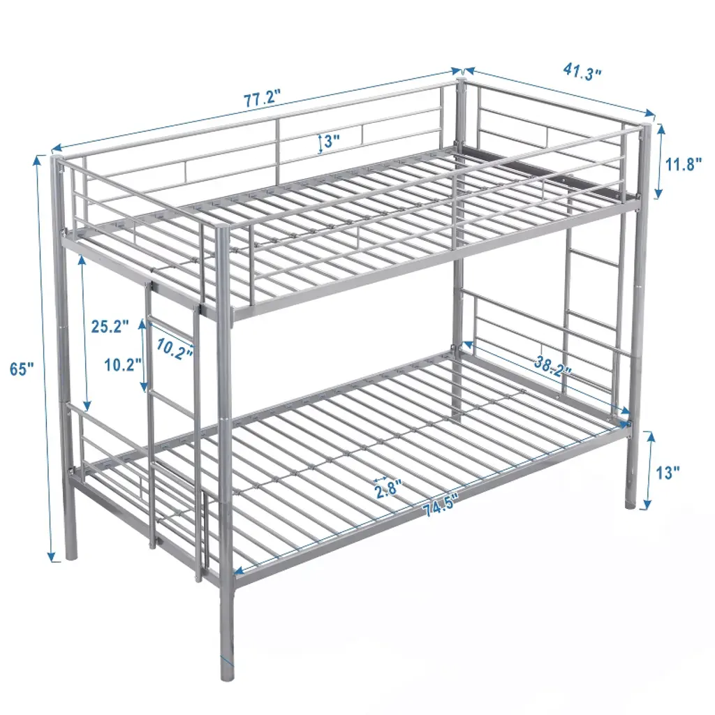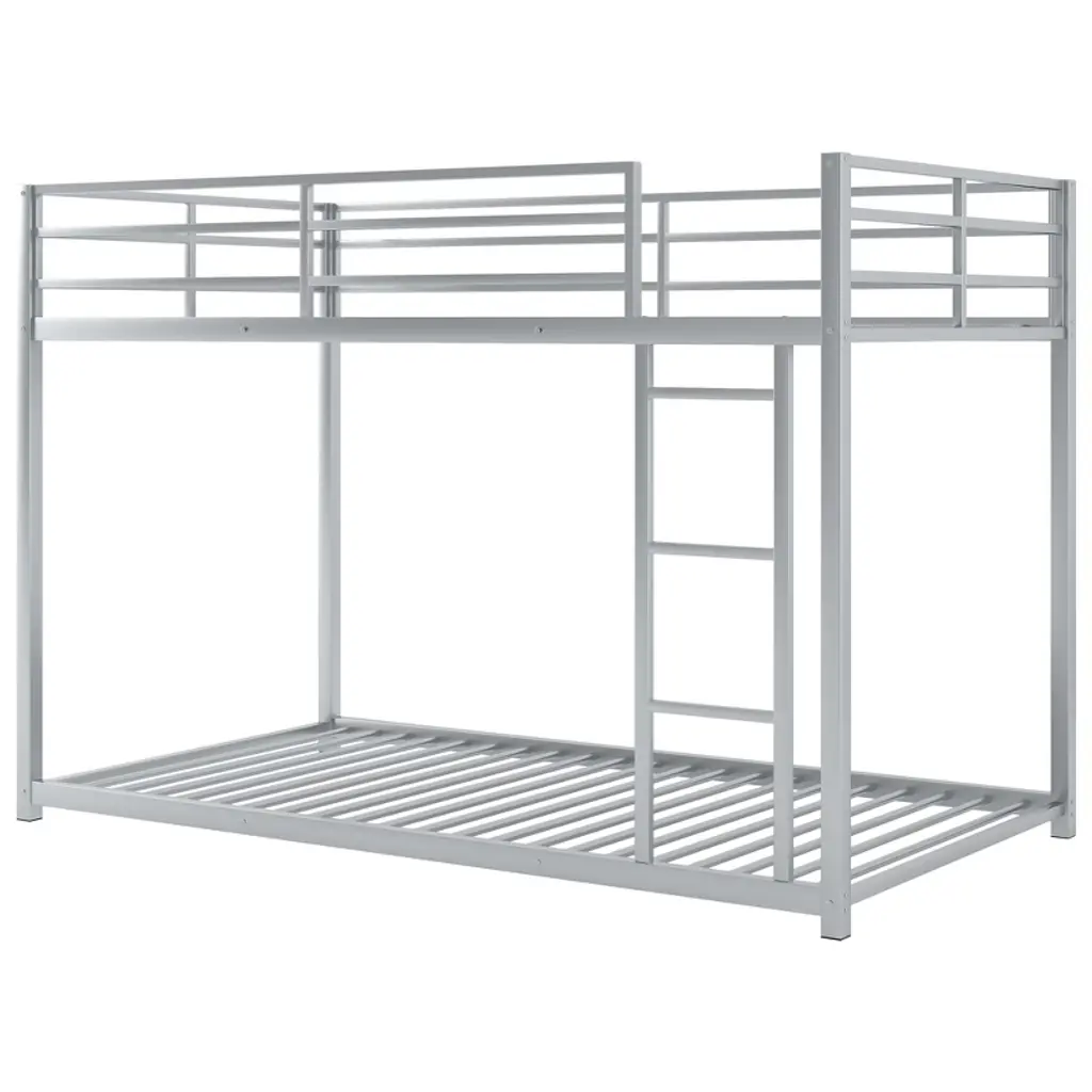 Gulches Twin Over Twin Low Metal Bunk Bed - With Built-in Ladder, Full-length Guardrails, Silver