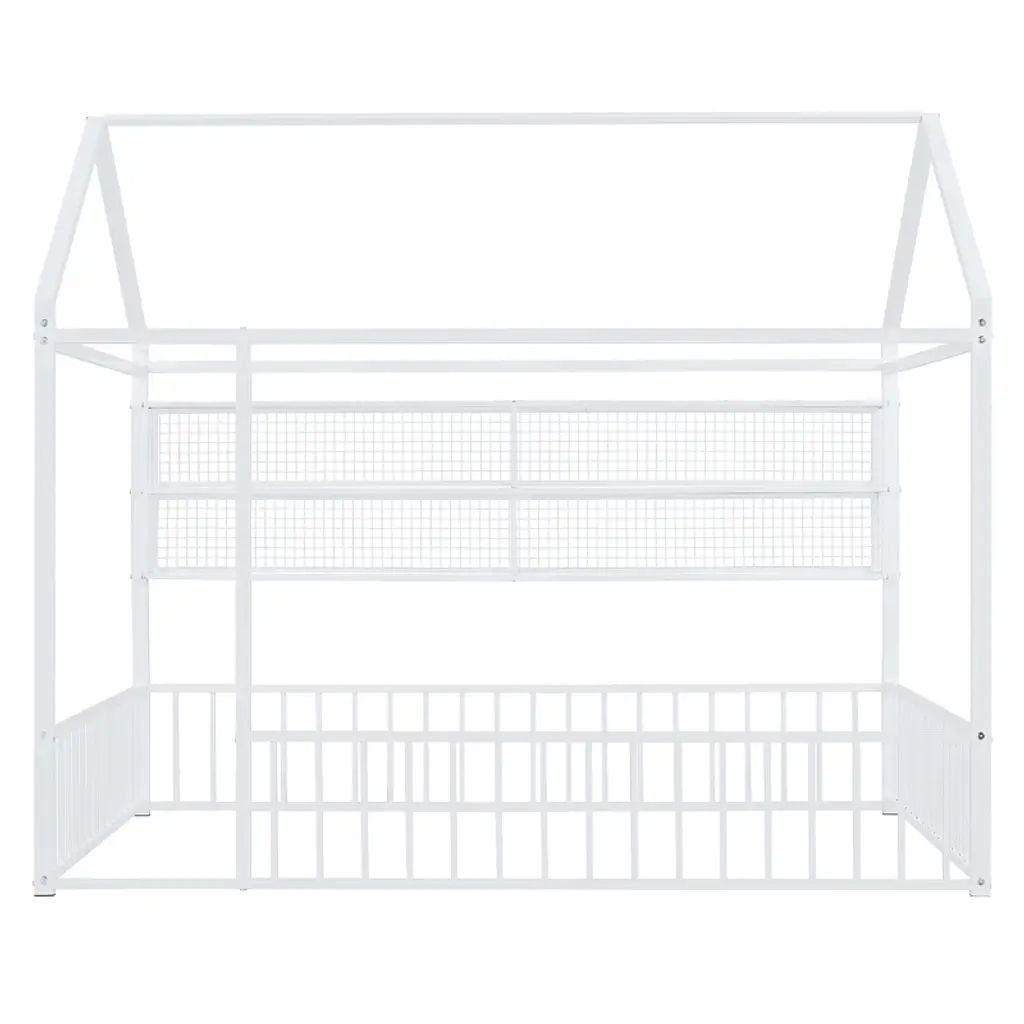 Gulches Twin over Twin House Bunk Bed combines whimsy and practicality with its playhouse design, perfect for fun playtime and cozy sleep. Crafted from a sturdy solid metal frame, it features high upper bunk guardrails for safety. Its clean silhouette delivers a modern, timeless style. The built-in ladder is convertible¡ªinstall left or right to fit your space. Ships with all parts, tools, and instructions; assembles in under an hour with help.