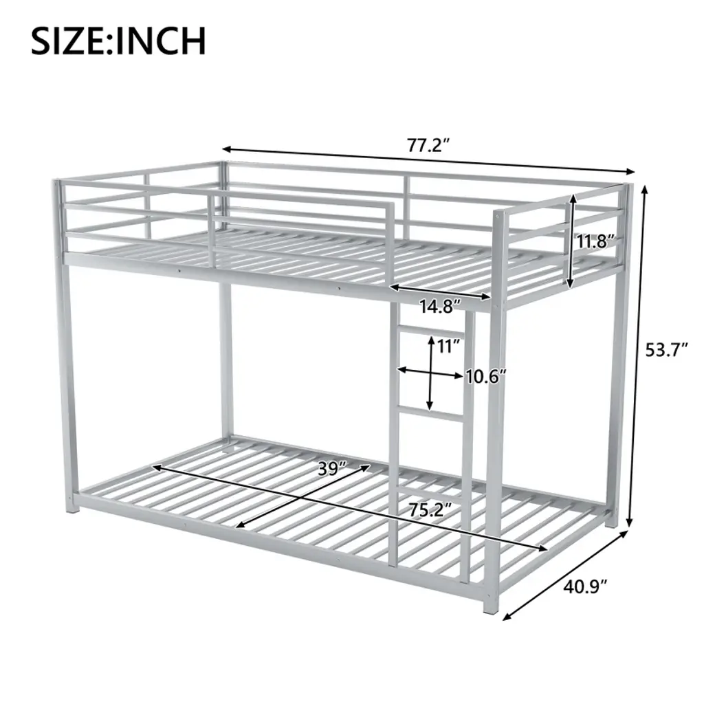 Gulches Twin Over Twin Metal House Bunk Bed - With Ladder & Slide, Convertible Placement, High Guardrails, Black