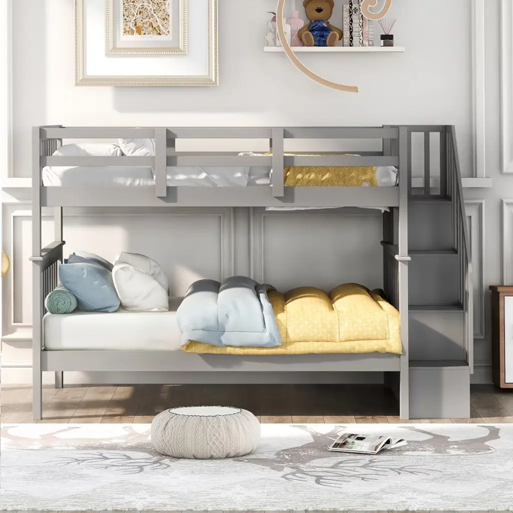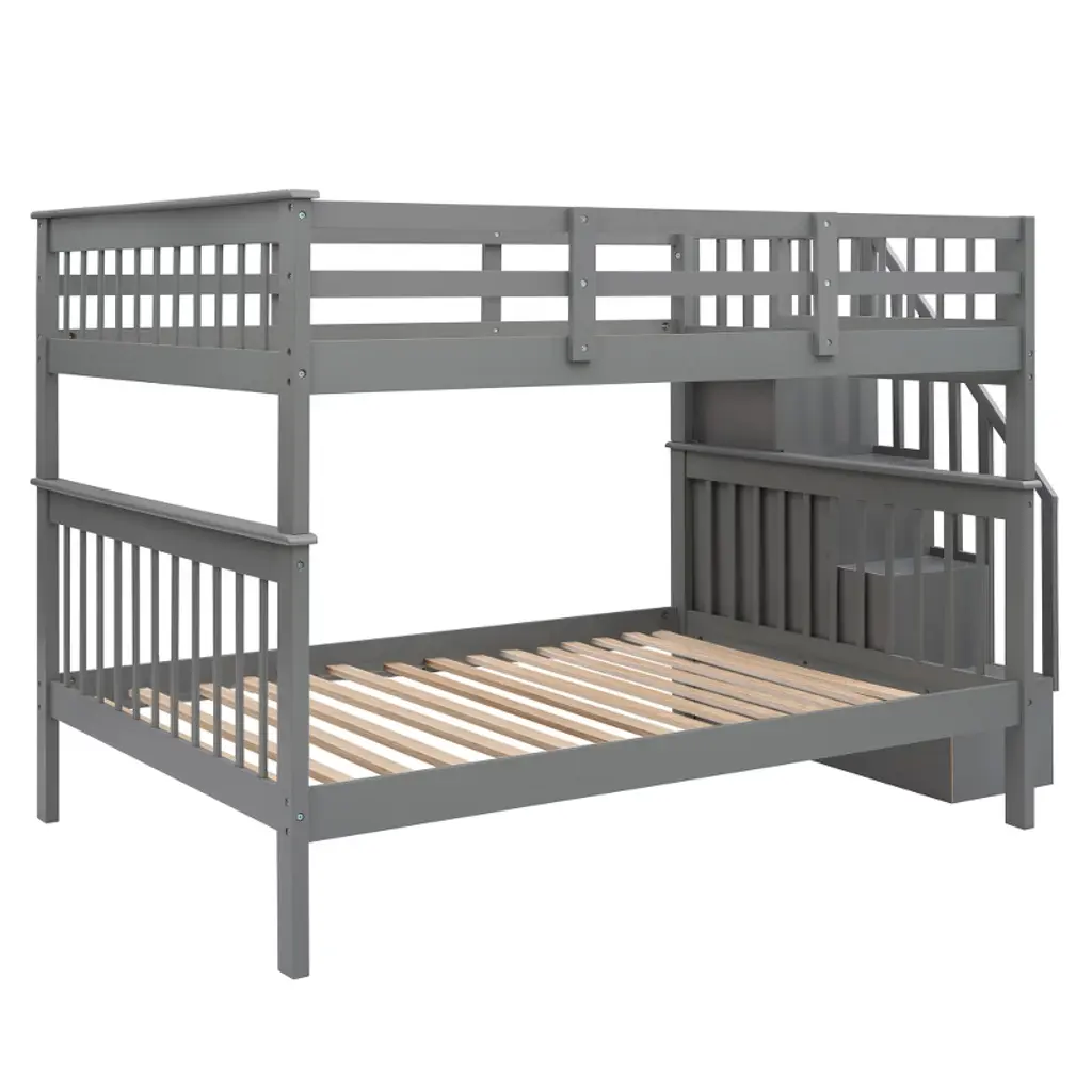 Jujabu Stairway Full-over-full Bunk Bed With Storage And Guard Rail For Bedroom, Dorm, Gray