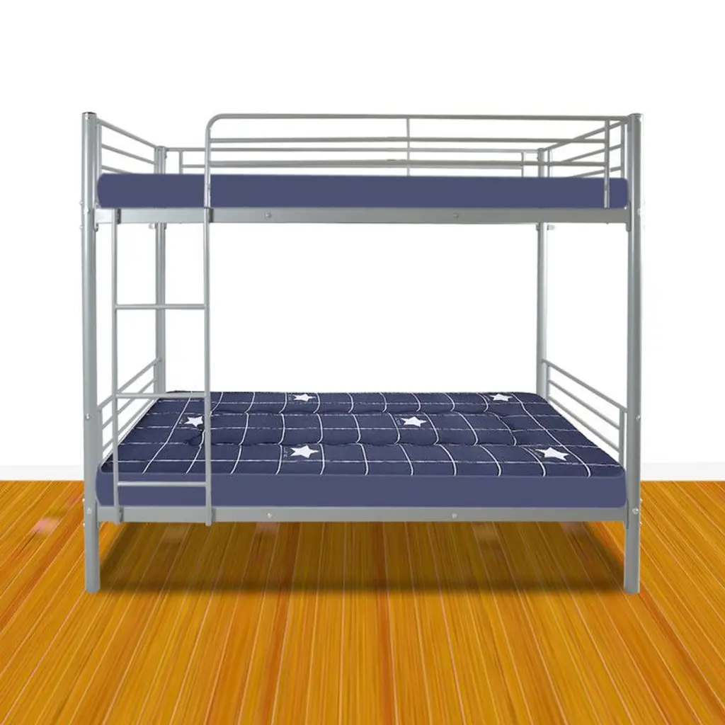 This simple and safe bed is not only designed for children. 250 lbs. per berth can fully meet the needs of adults. This bedstead has a strong iron tube frame, which is divided into 2-layers of twin size. The double-layer design saves space effectively. The fence around the upper berth provides a safety guarantee. Ladder can be selected on the left or right side according to your own needs. Memory foam, latex or spring mattress can be placed directly on the bedstead, no need to use box spring.Wooden slate can give enough support to the mattress, prevent the mattress from drooping, increase the life of the mattress.