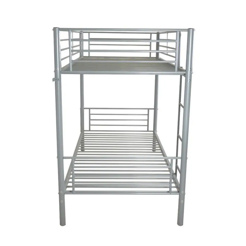 Karl Home Gray Twin Over Twin Steel Bunk Bed Frame Ladder Bedroom Dorm Room For Kids Adult Children
