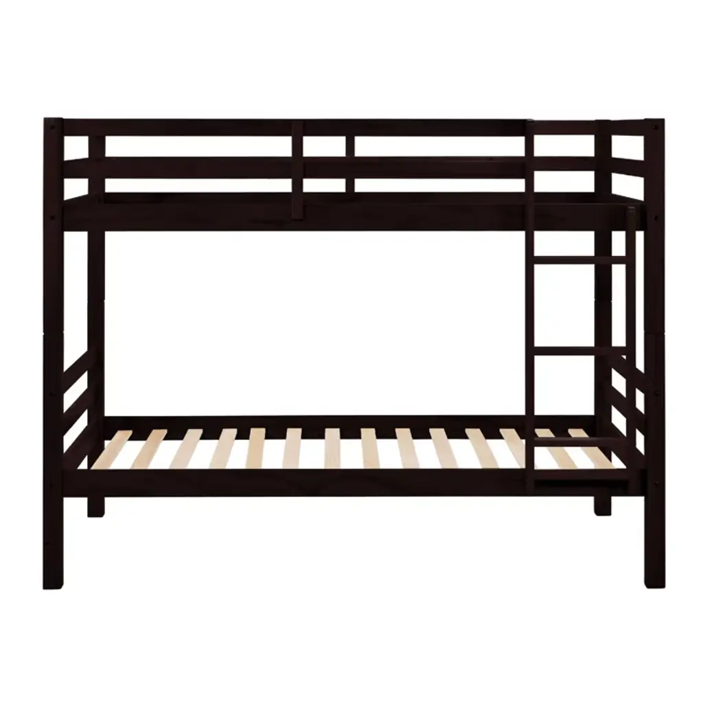 Turn bedtime into the best time with the Lilose Twin Over Full Bunk Bed, designed for both sleep and play. The top bunk features extra-tall 14in. guardrails to keep little dreamers safe and snug all night long. A reversible, removable ladder with smooth, rounded edges makes climbing up and down fun and easy. Crafted from strong, solid pine wood, this bed is built to handle everything from sleepovers to pillow forts. The modern slatted design and color-matched hardware give it a cool, polished look parents will love. Each bunk supports up to 400 pounds, so kids can grow with it while parents enjoy lasting durability. With its space-saving design and no box spring needed, this bunk bed brings big fun and comfort to any room. Customer assembly is required.