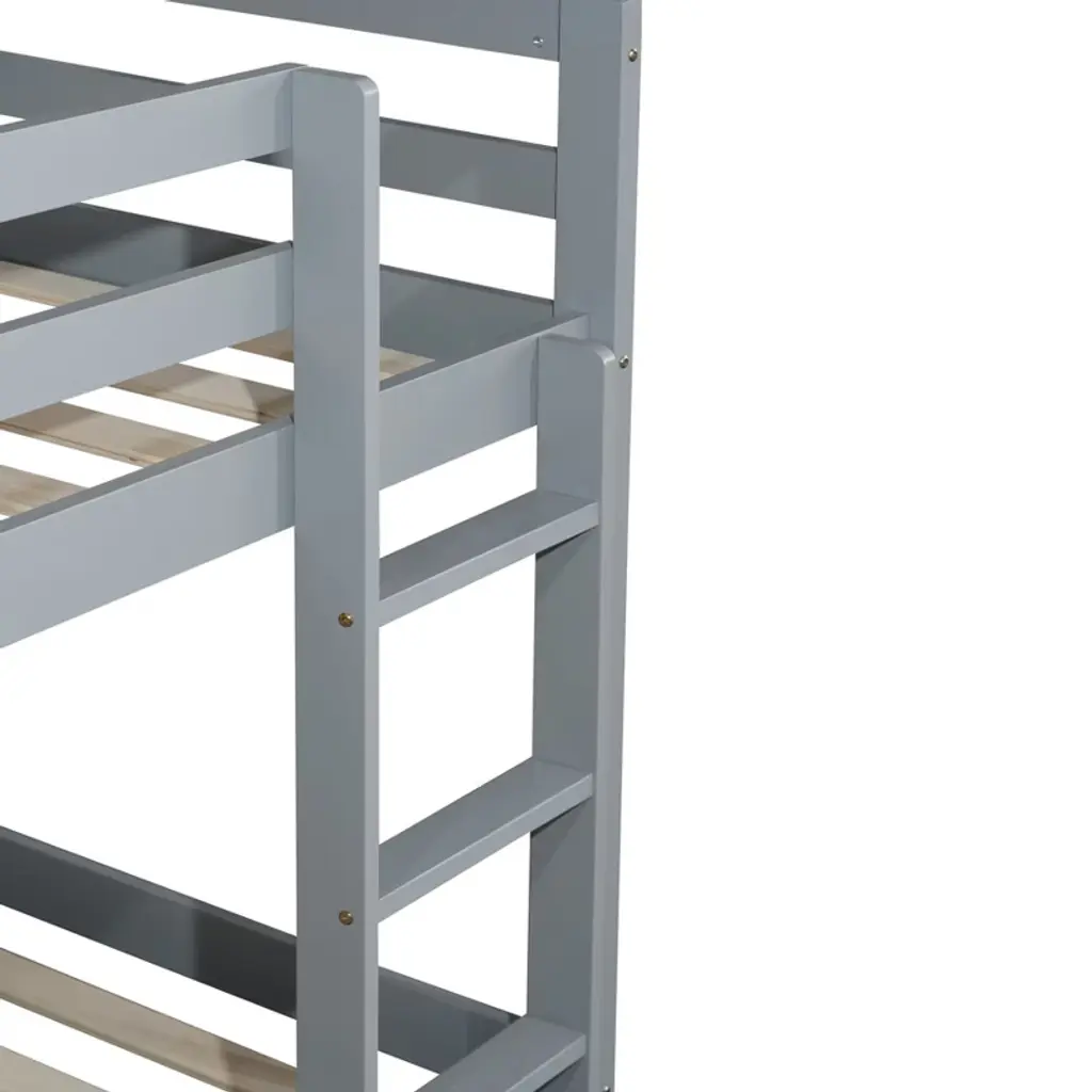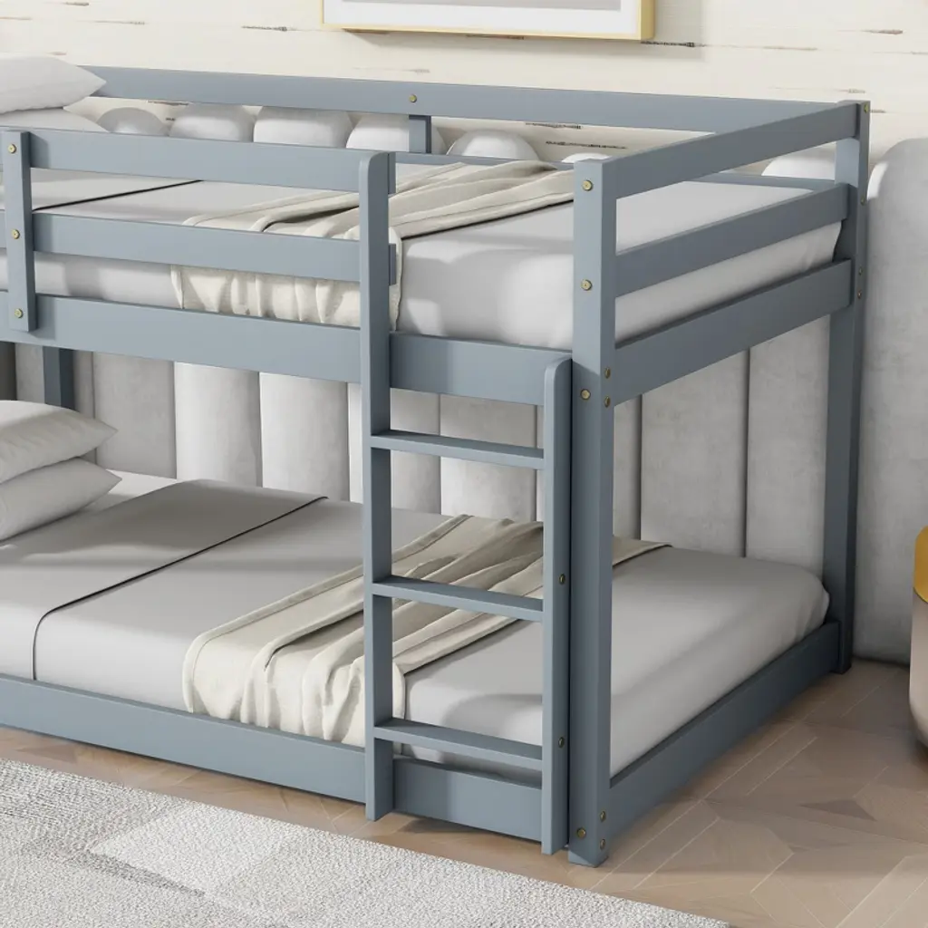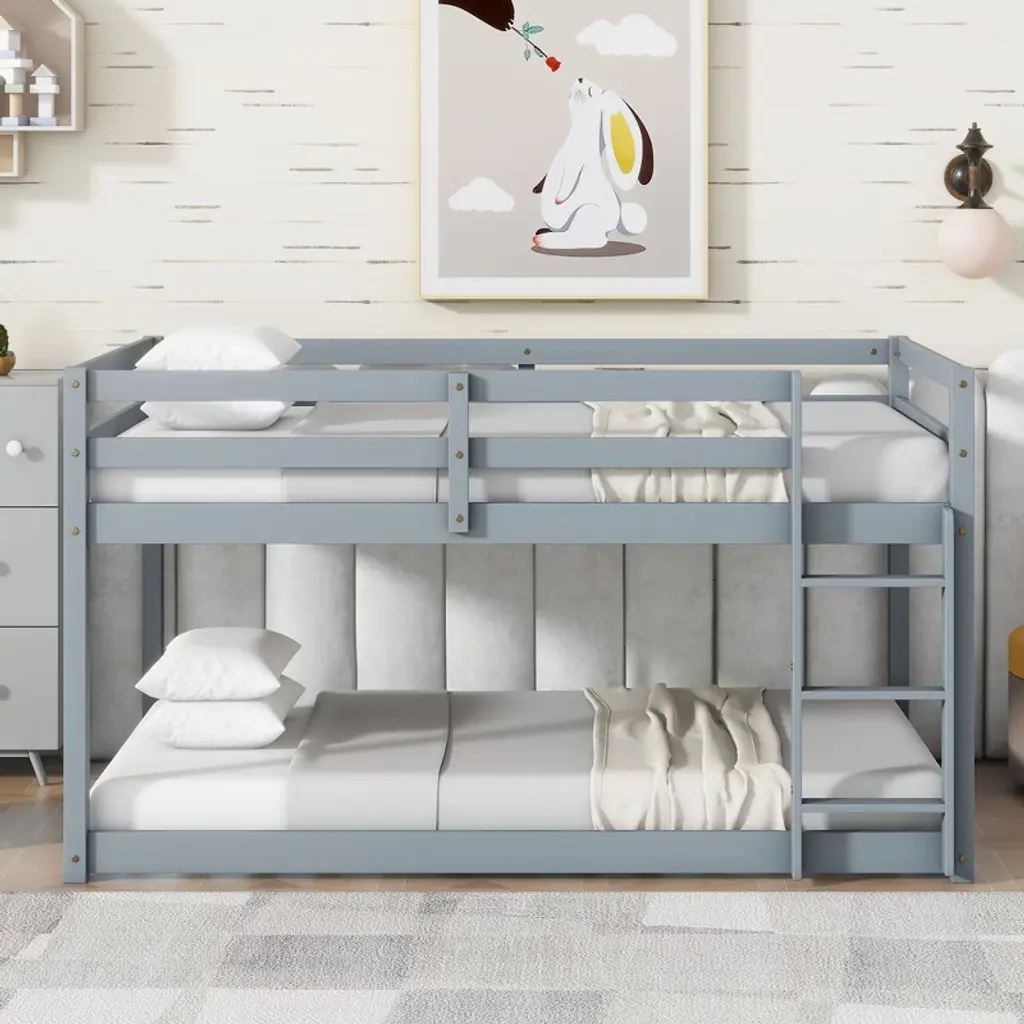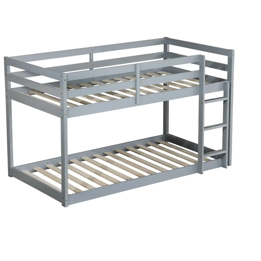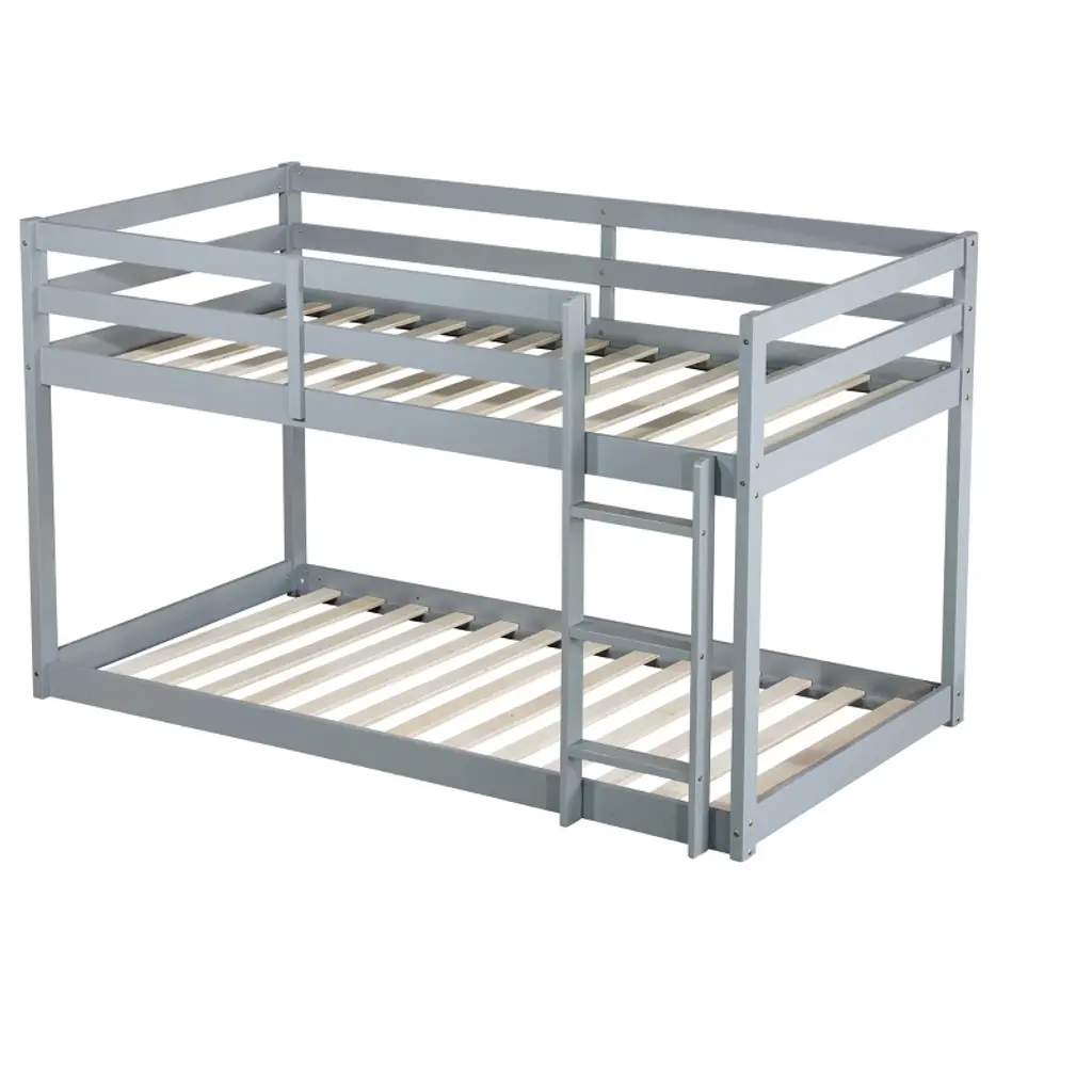 Kwpzqeb Bunk Bed Twin Over Twin, Kids Solid Wood Bunkbeds With Safety Guard Rails And Ladder, Floor Bunk Bed For Girls And Boys, Gray